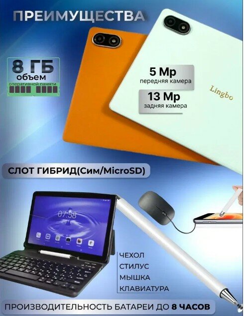 Планшет Lingbo L8 8/512gb с клавиатурой и стилусом , зеленый интересное: