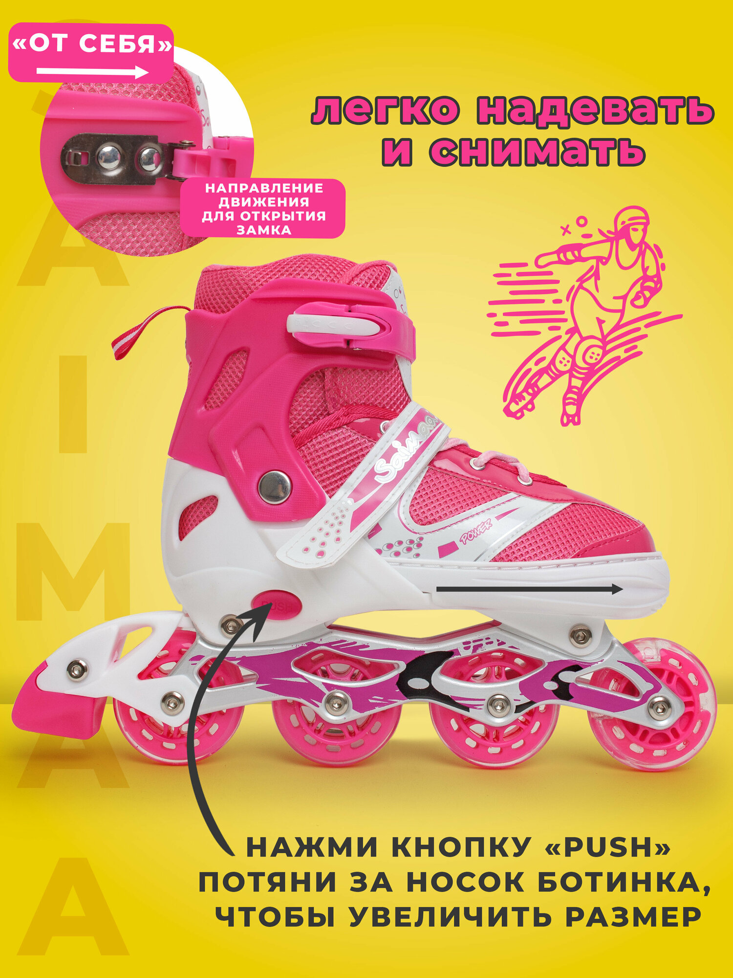 СохранитьРоликовые коньки раздвижные детские S (31-34) цвет розовый интересное: