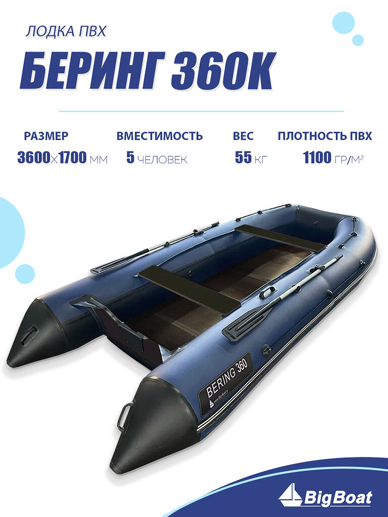 Надувная, под мотор, килевая лодка из ПВХ для рыбалки Bering (Беринг) 360К пол-книжк интересное: