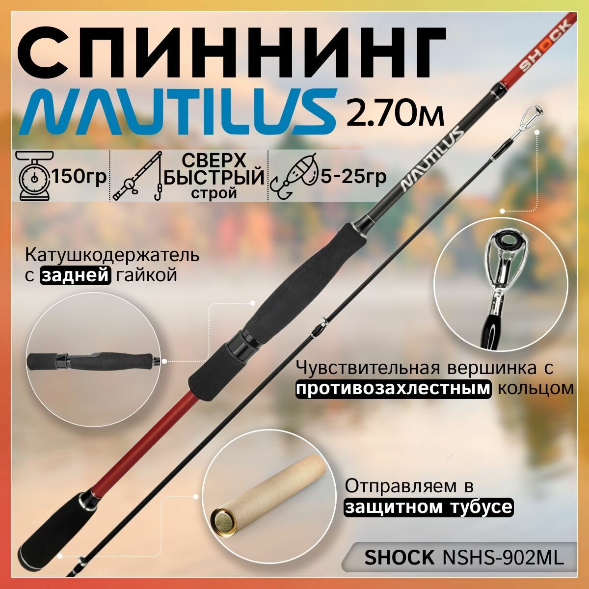 Купить Спиннинг Nautilus SHOCK NSHS-902ML 2.70м 5-25гр