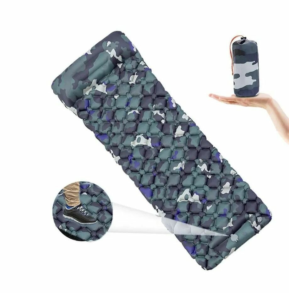 Коврик туристический самонадувающийся синий, надувной матрас с подушкой и встроенным насосом