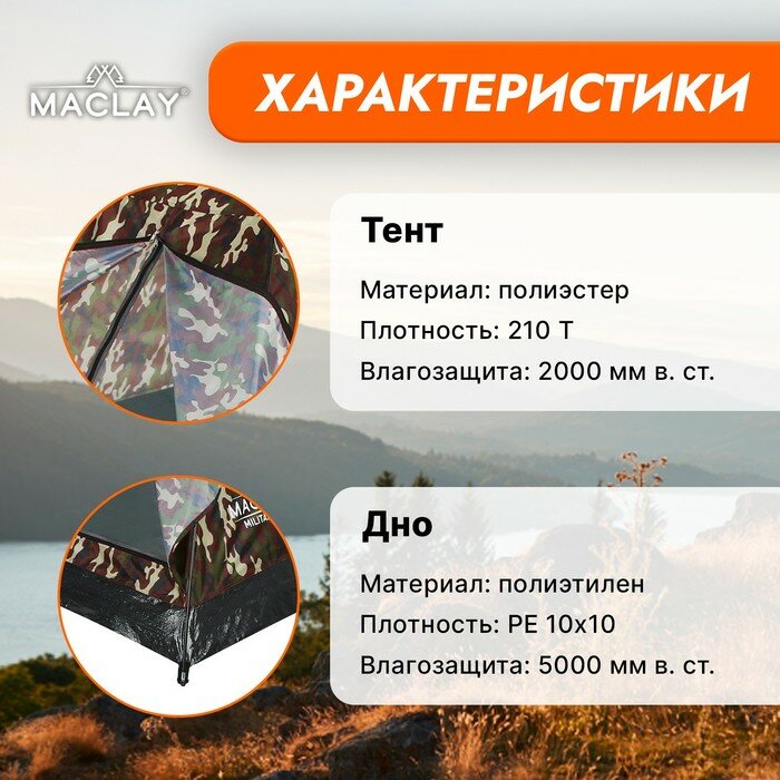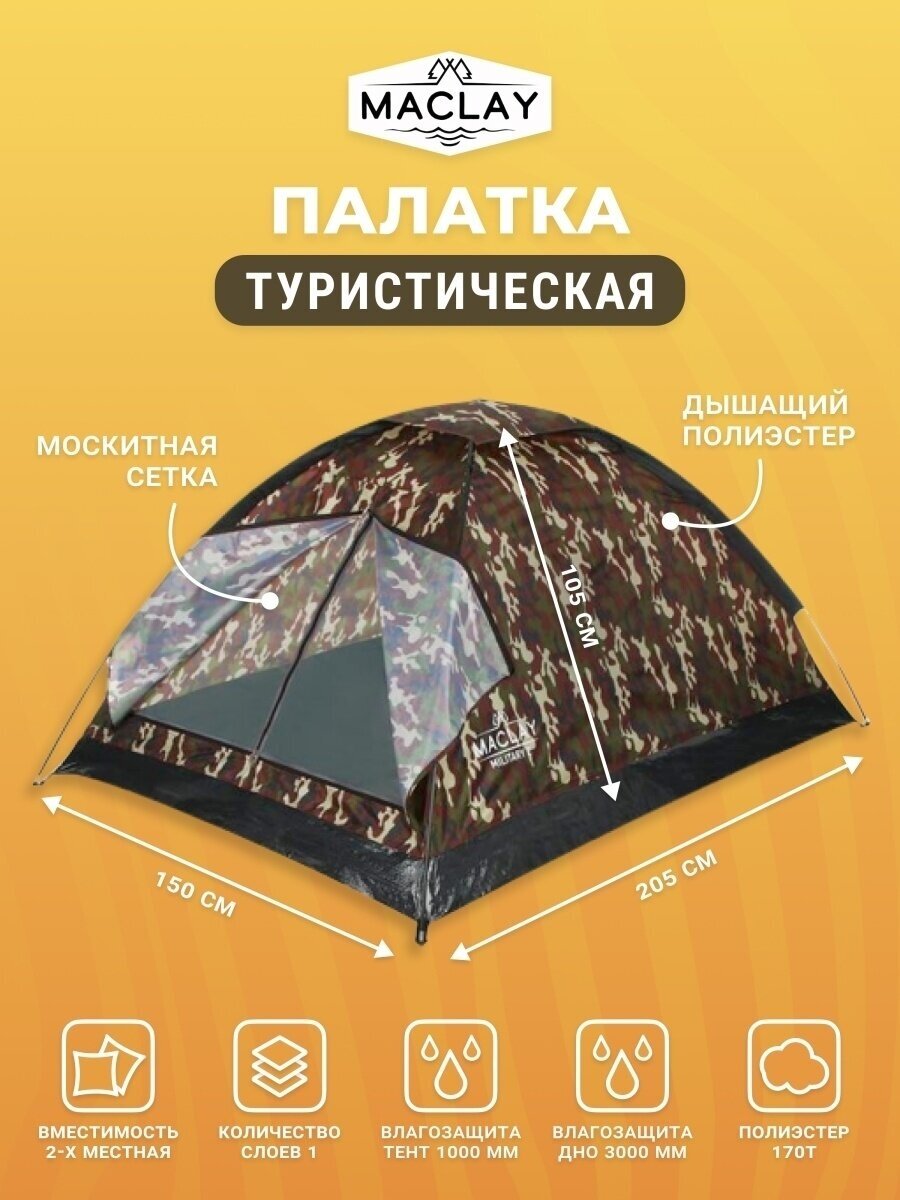 Maclay Палатка туристическая MILITARY 2, размер 205 х 150 х 105 см, 2-местная, однослойная интересное: