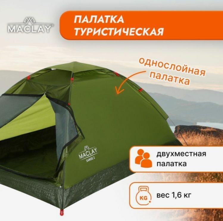 Палатка трекинговая одноместная Maclay SANDE 2, зеленый интересное: