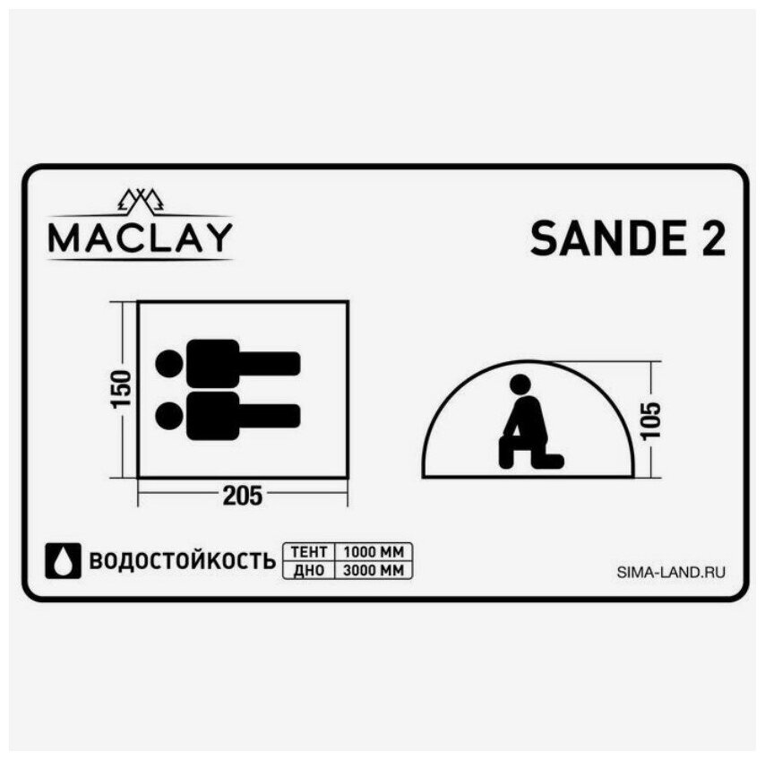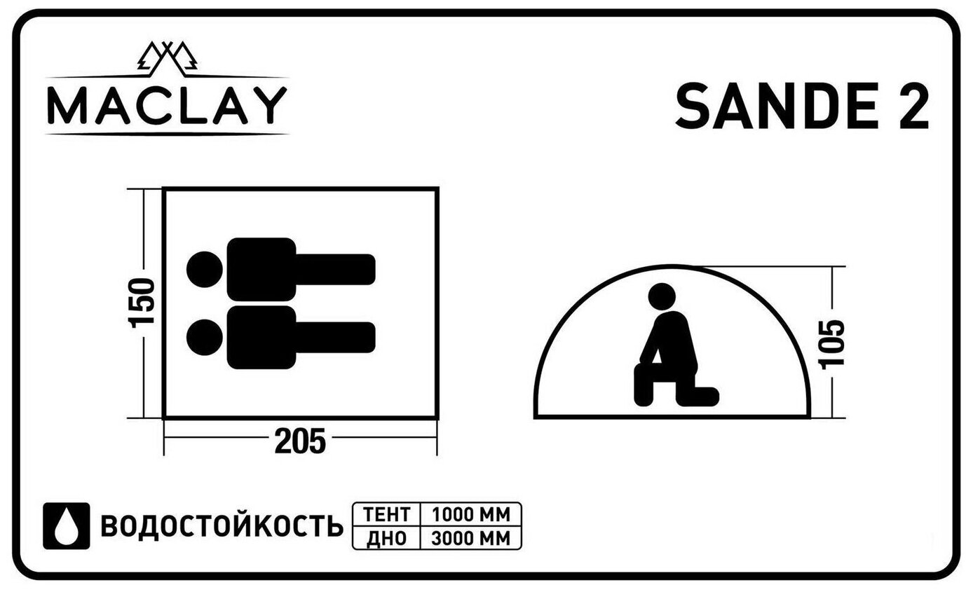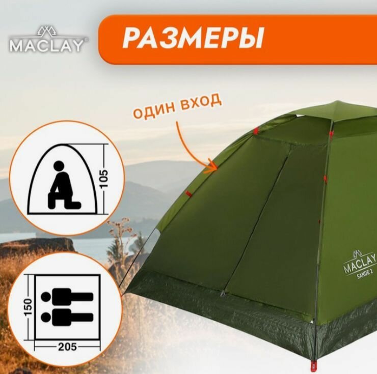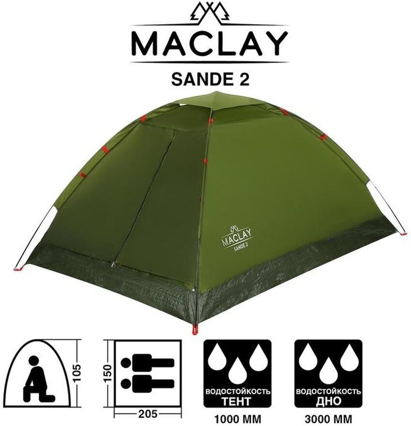 Maclay Палатка туристическая Maclay SANDE 2, р. 205х150х105 см, 2-местная, однослойная