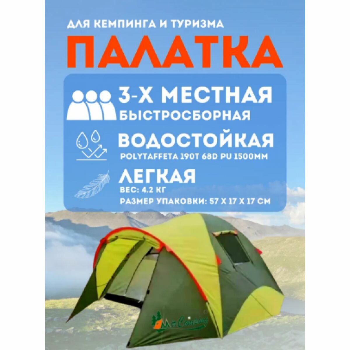 Ниже Вы можете прочитать отзывы на палатка туристическая 3 местная с тамбуром MirCamping 1011-3 двухслойная шатер летняя, палатка для рыбалки , для кемпинга, шатер для дачи, ознакомится с подробными характеристиками, посмотреть интересные обзоры и фотографии на палатка туристическая 3 местная с тамбуром MirCamping 1011-3 двухслойная шатер летняя, палатка для рыбалки , для кемпинга, шатер для дачи.