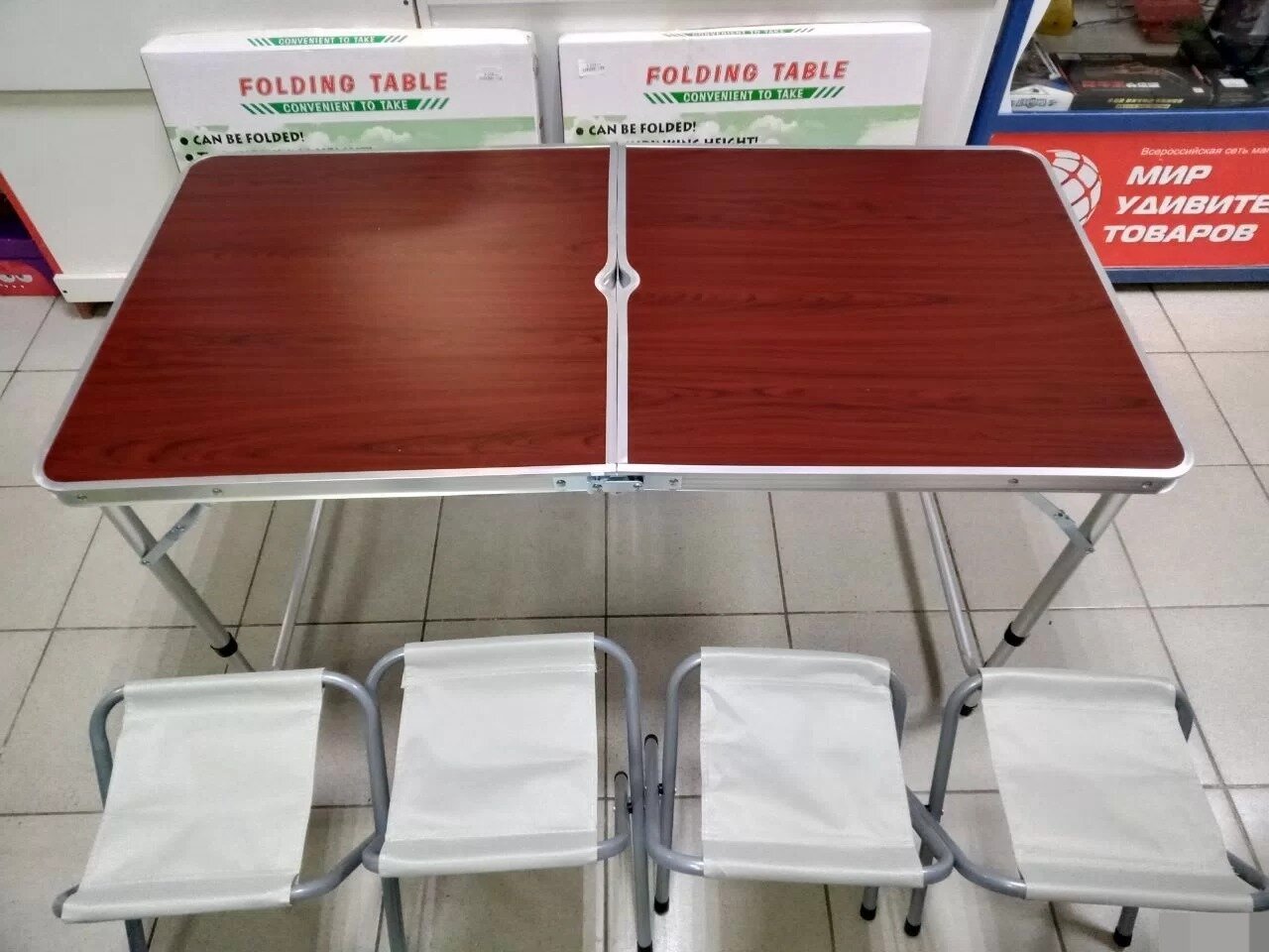Стол туристический с 4 стульями складной, коричневый интересное: