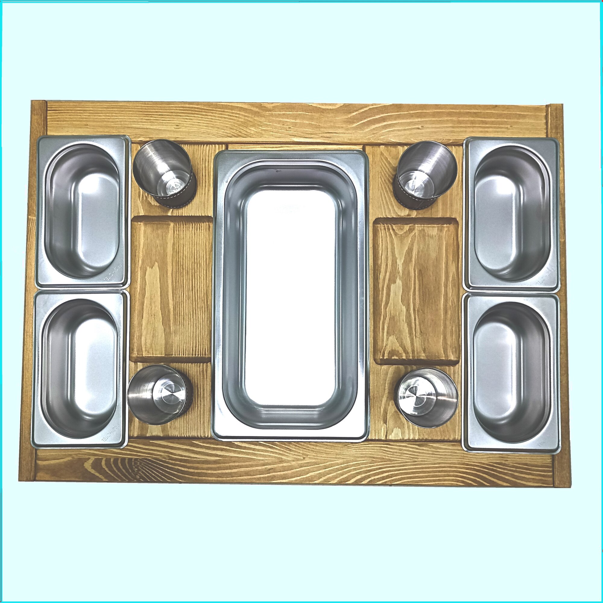 | Подробная комплектация | Стол складной для пикника -1 шт. Ёмкости из пищевой нержавеющей стали: контейнеры 0,5 л -4 шт., стаканы 0,2 л -4шт., лоток для продуктов 1,7 п - 1 шт, чехол-сумка для набора - 1 шт. |