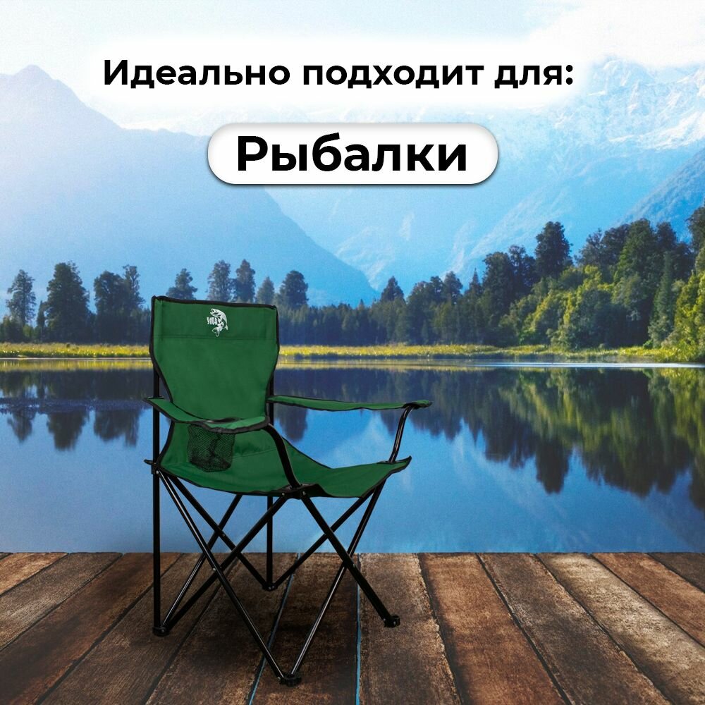 Стул складной туристический "улов", стул походный широкий-усиленный в чехле, для рыбалки, туризма и отдыха, черно-зеленый