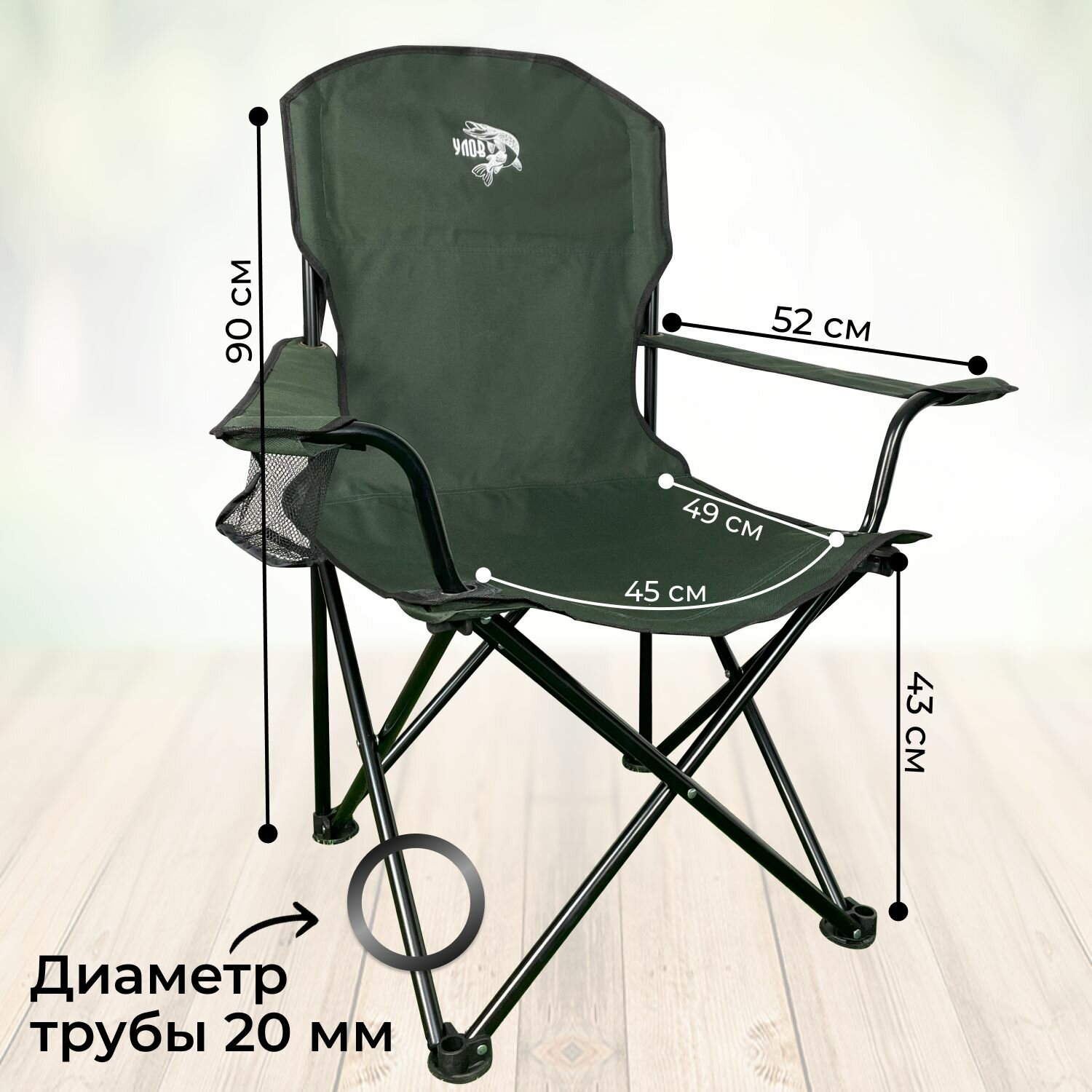 Стул складной туристический "улов" усиленный в чехле, зеленый