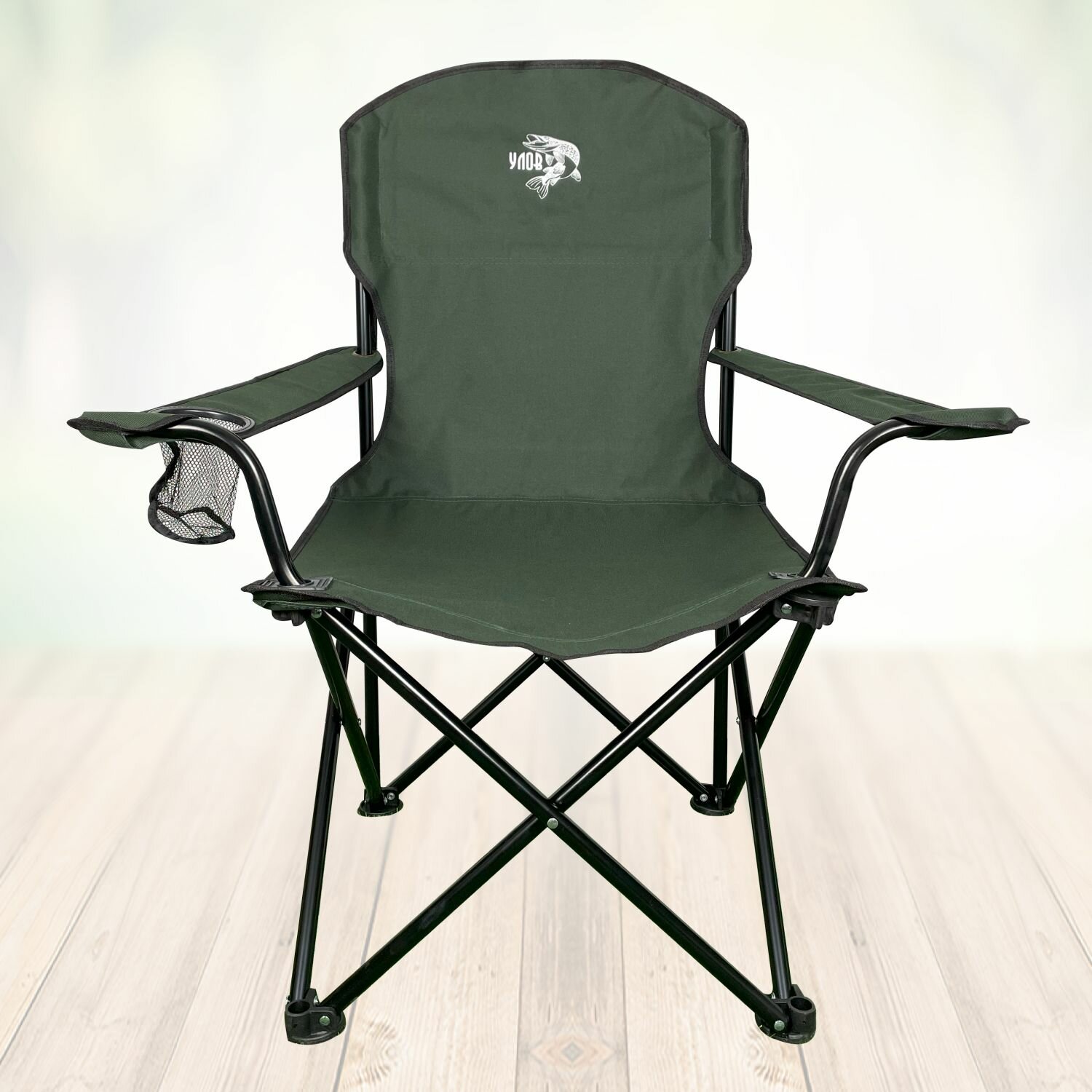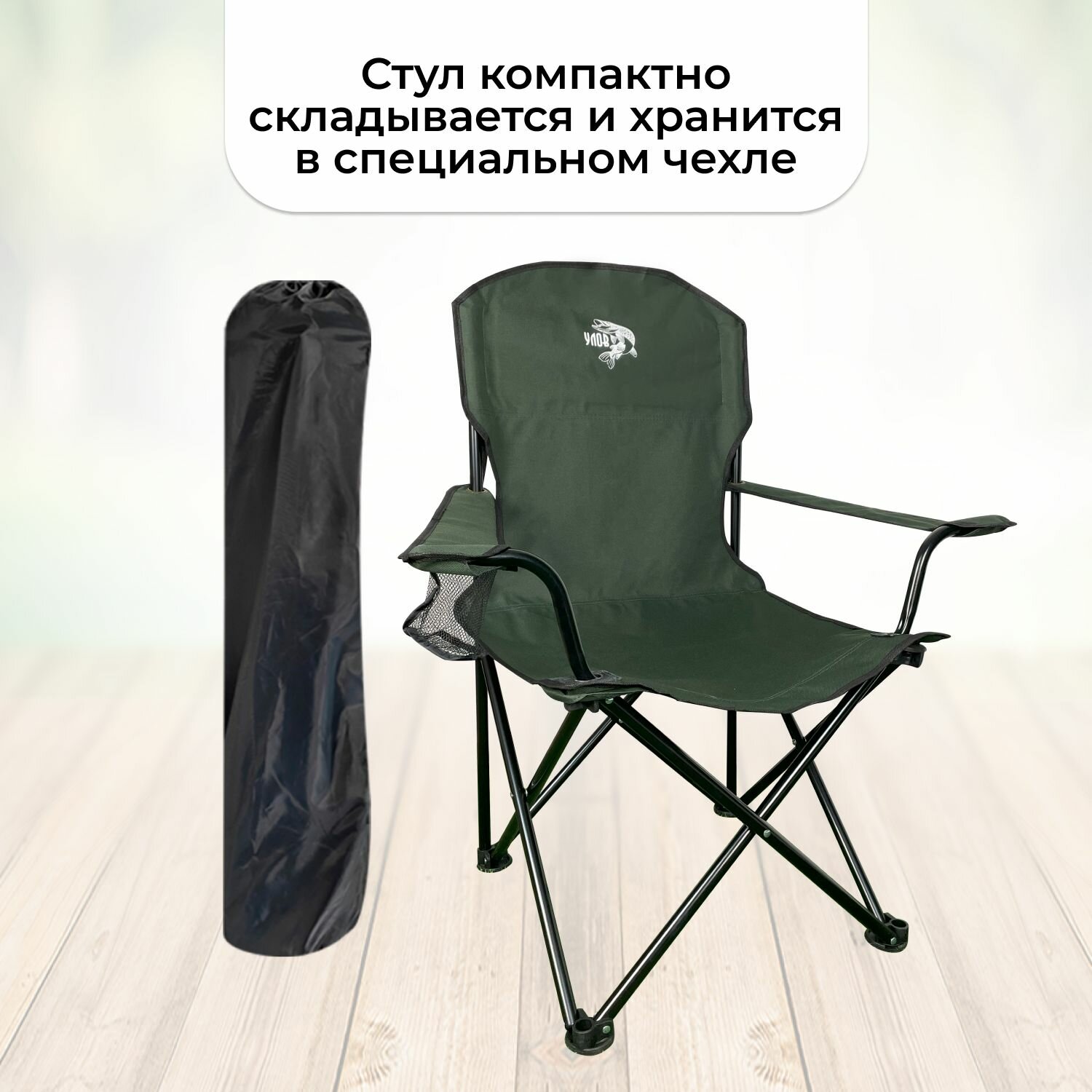 Стул складной туристический "улов", стул походный широкий-усиленный в чехле, для рыбалки, туризма и отдыха, черно-зеленый