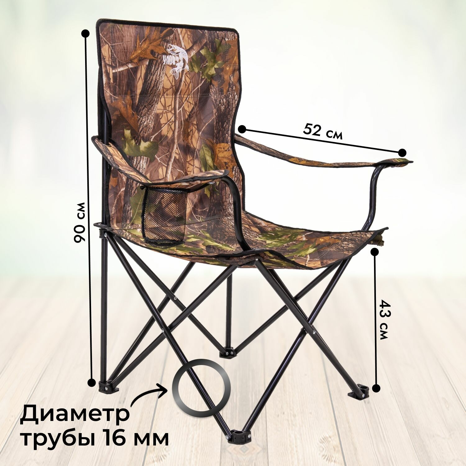 Кресло складное туристическое TERBO с подстаканником , вес до 100 кг, цвет милитари камуфляж