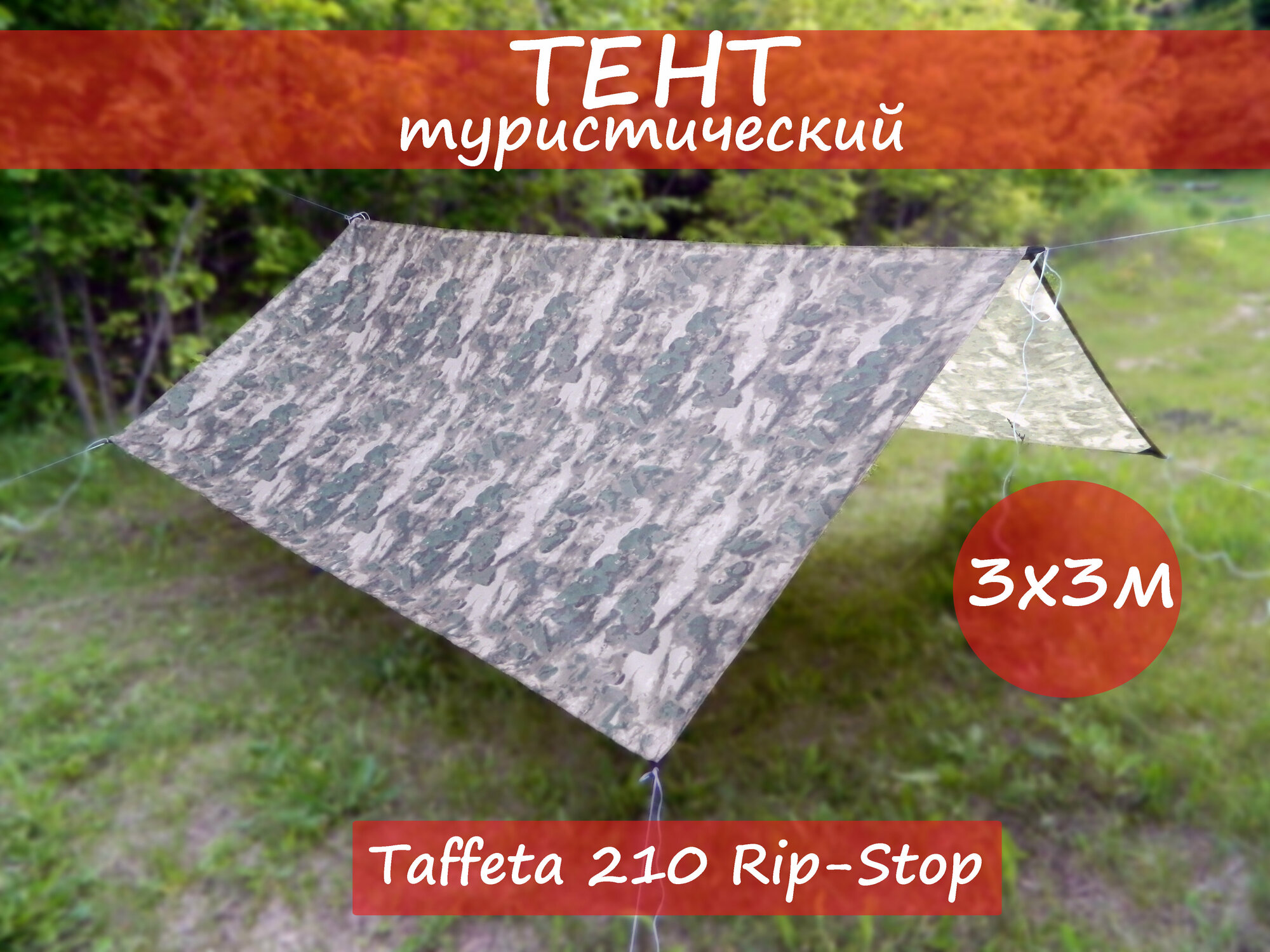 Тент туристический водоупорный Таффета мультикам 210T Rip-Stop 3х3 м/ Навес/ Полог/ Укрытие