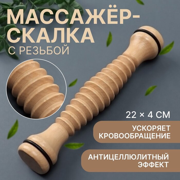 Массажёр «Скалка», универсальный, d 4 × 22 см, с резьбой, деревянный интересное: