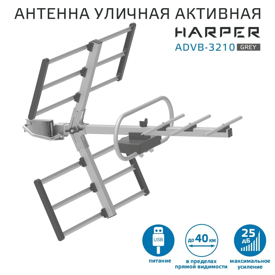 Антенна для телевизора уличная активная HARPER ADVB-3210 Gray интересное: