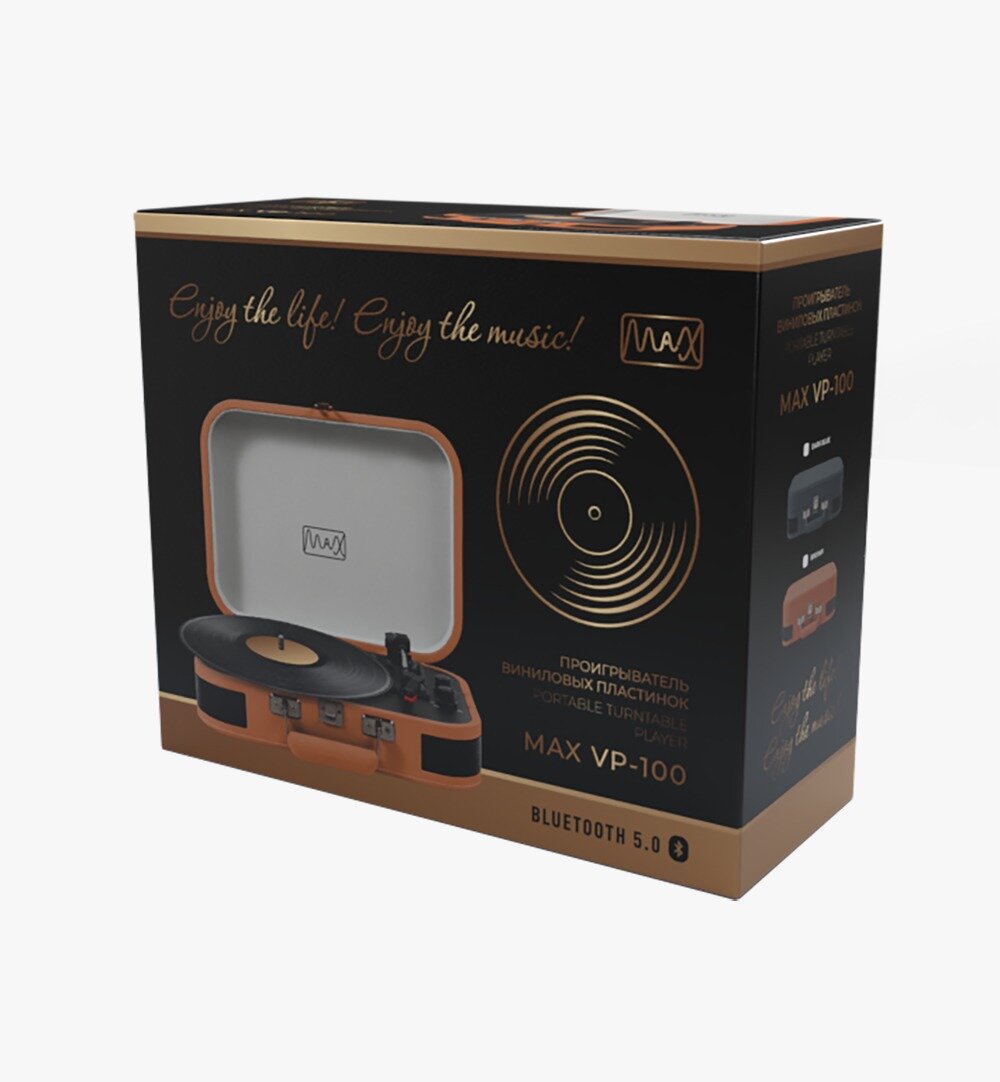 Виниловый проигрыватель / Проигрыватель виниловых пластинок MAX VP-100 VINTAGE, дизайнерский винтаж чемоданчик для пластинок ретро интересное: