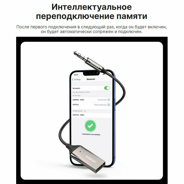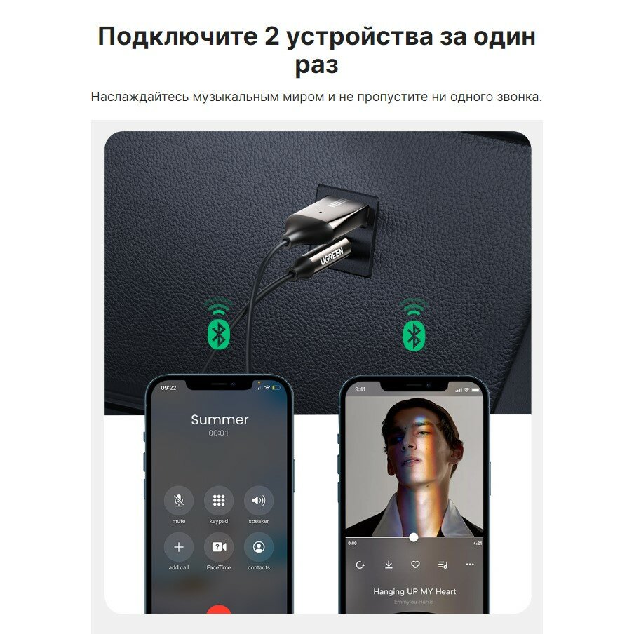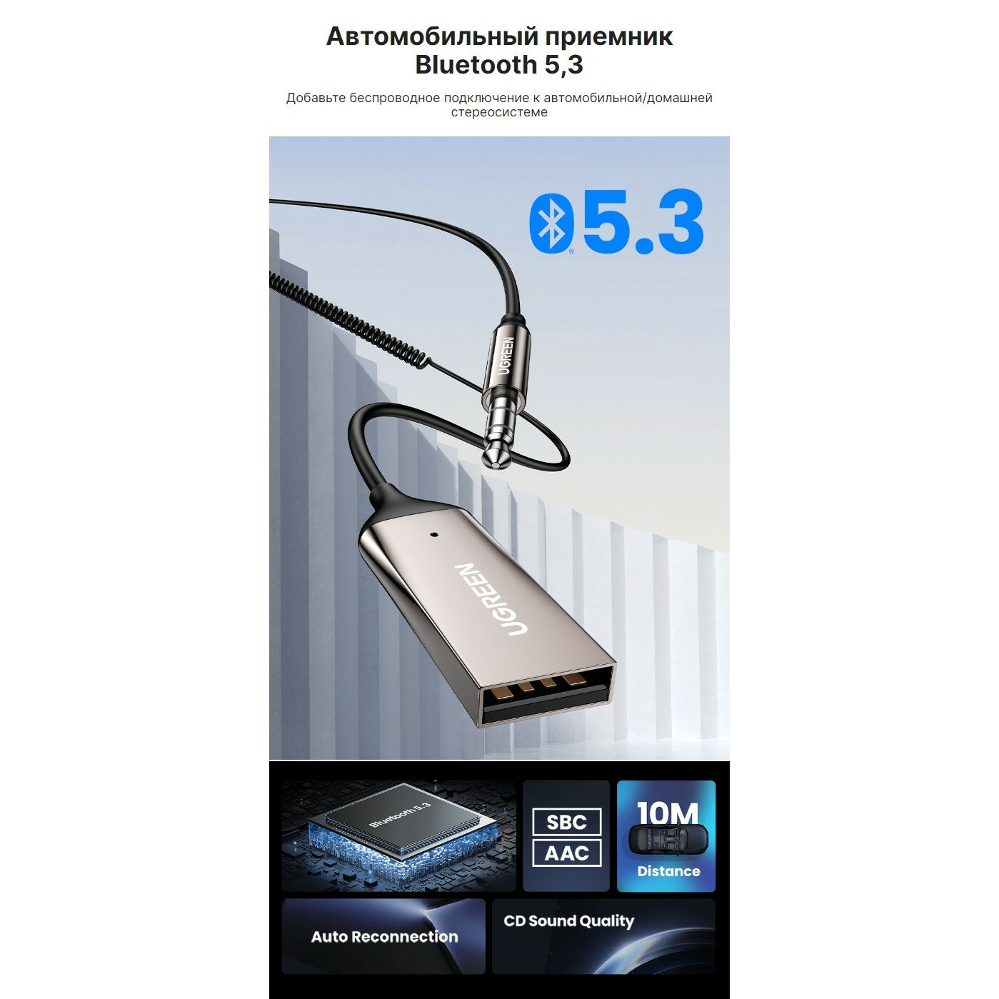 Bluetooth 5.3 адаптер для автомобиля / UGREEN Car Bluetooth ресивер USB-AUX 3,5 мм интересное: