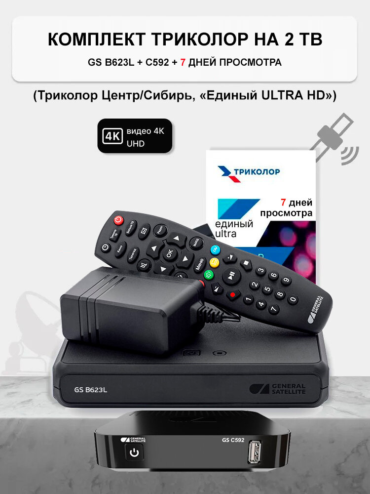 Комплект Триколор на 2 тв GS B623L/B626L/B627L + С592 + 7 дней (тариф 2500р/год) интересное: