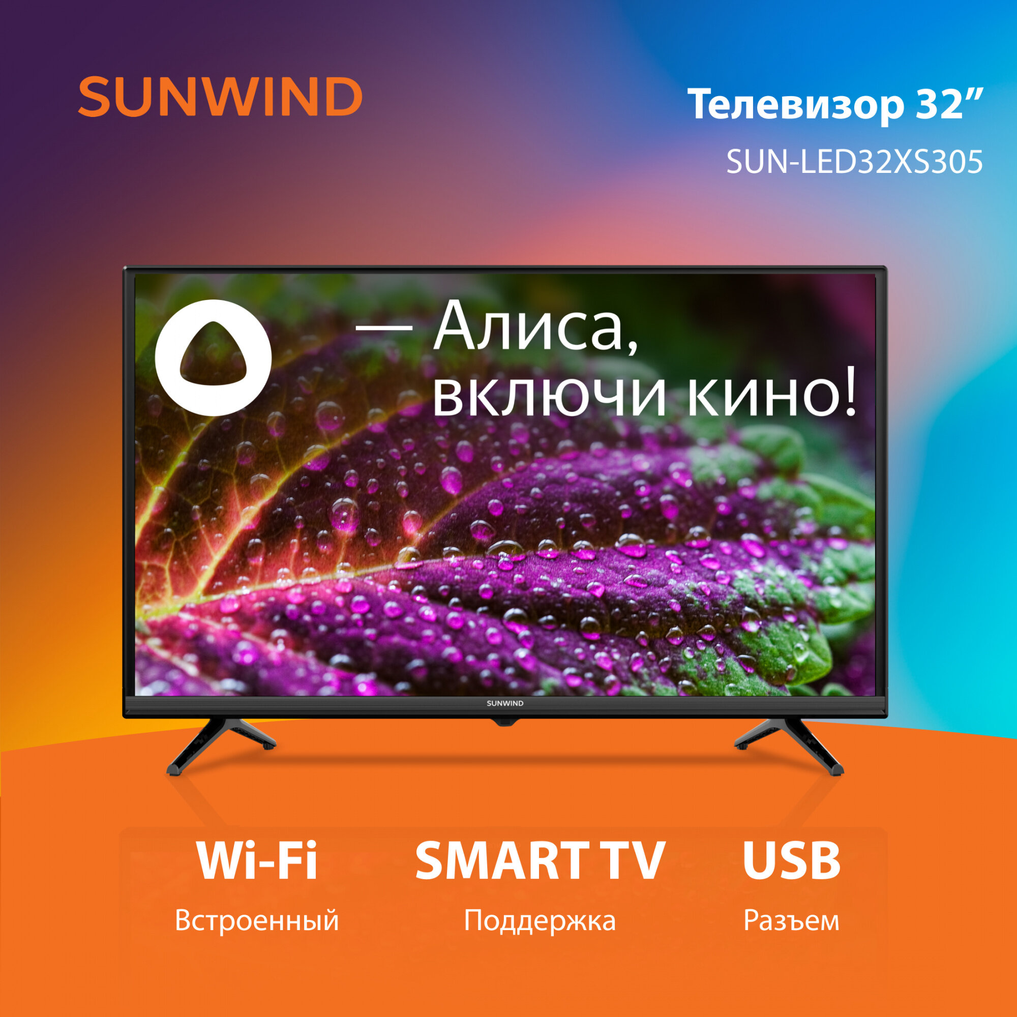 32" Телевизор SunWind SUN-LED32XS305, FULL HD, черный, смарт ТВ, Яндекс.ТВ