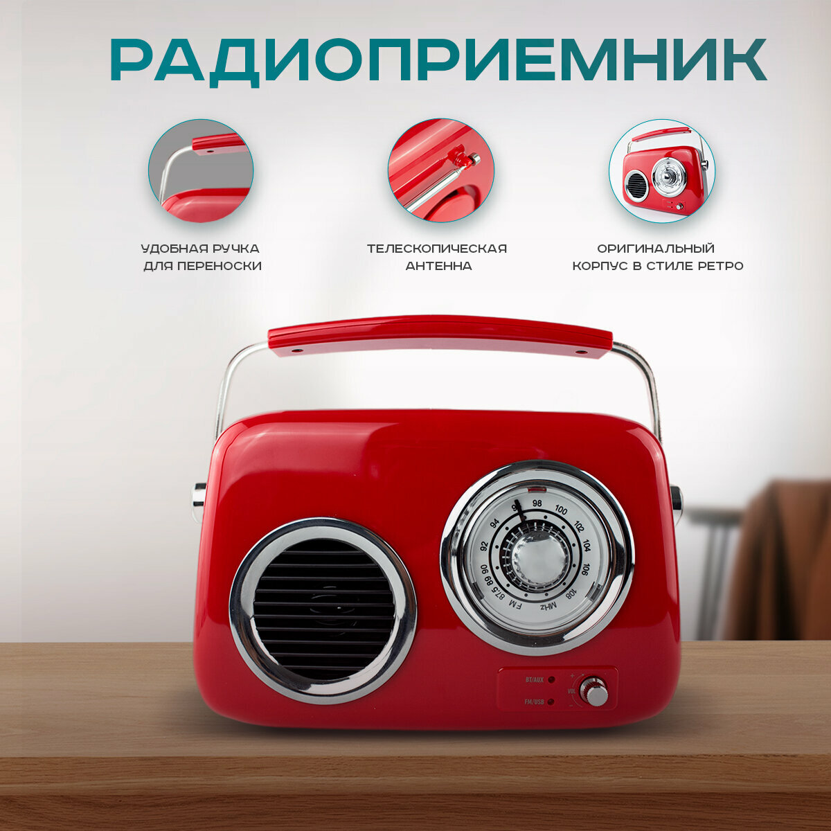 Радиоприемник ретро портативный аккумуляторный с Bluetooth, USB и AUX, красный интересное: