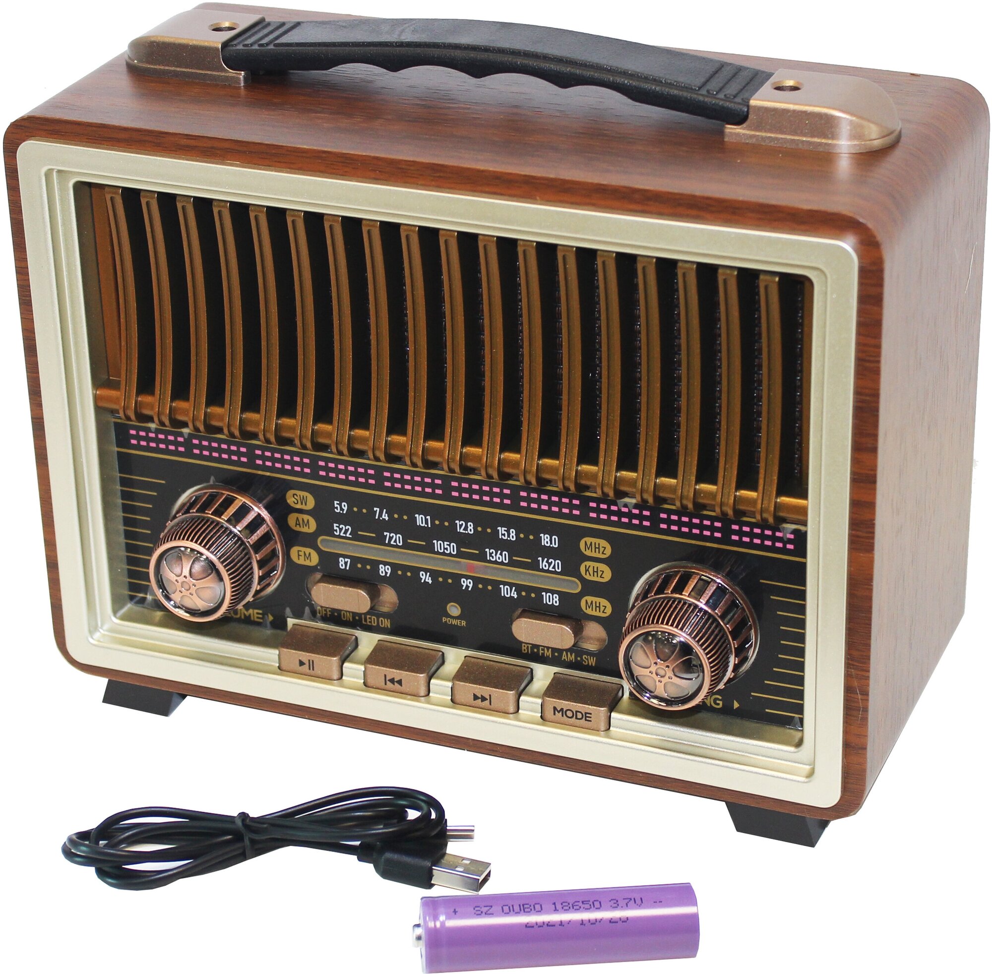Радиоприёмник с симпатичным ретро-дизайном Meier M-2025BT Gold, с поддержкой Bluetooth и блоком питания DC 5V 1А в комплекте интересное: