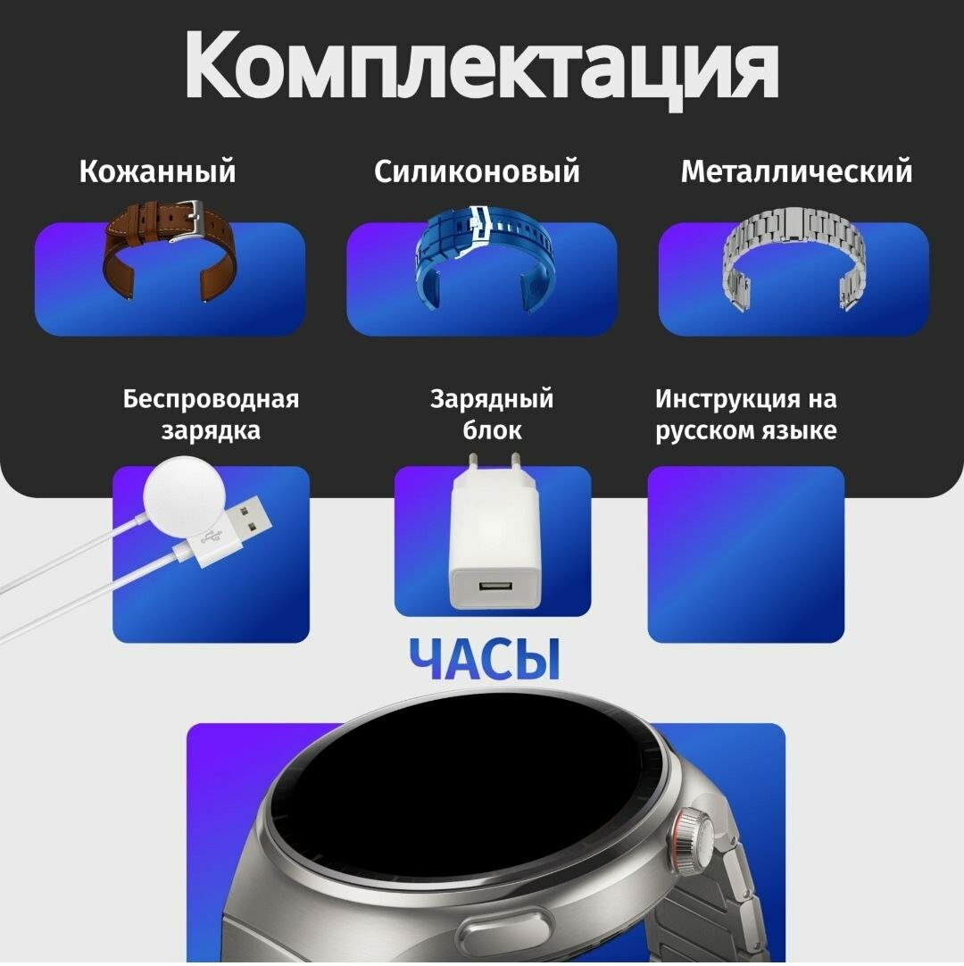 Смарт часы X6 MAX Smart Watch 2024 круглые мужские умные часы черные с 3-мя ремешками