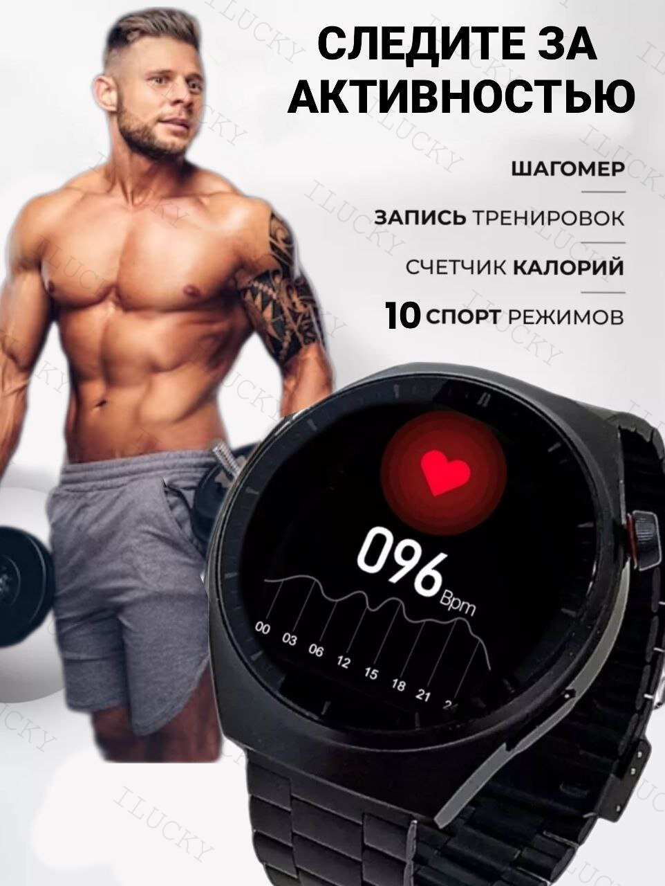 Смарт часы X6 MAX Smart Watch 2024 круглые мужские умные часы черные с 3-мя ремешками