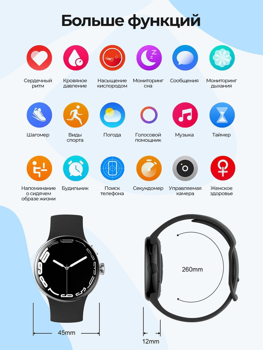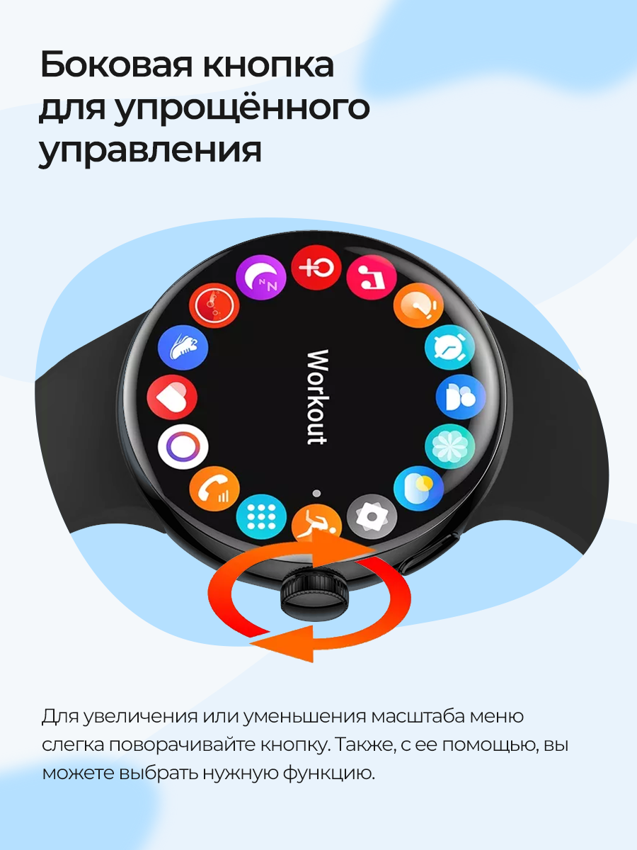 Смарт-часы умные наручные Double A Smart Watch 24 женские и мужские, круглые, водонепроницаемые, черные интересное: