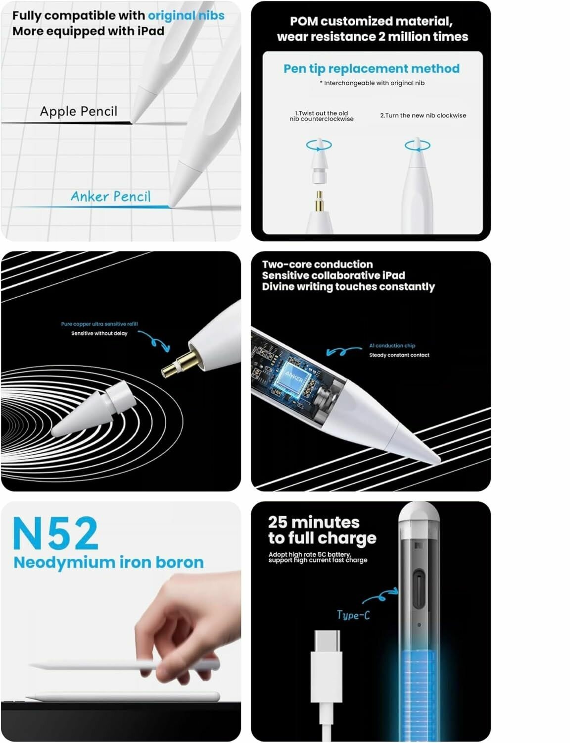 Стилус для планшета Anker Pencil емкостный, магнитный, Bluetooth 5.3 - Purple интересное: