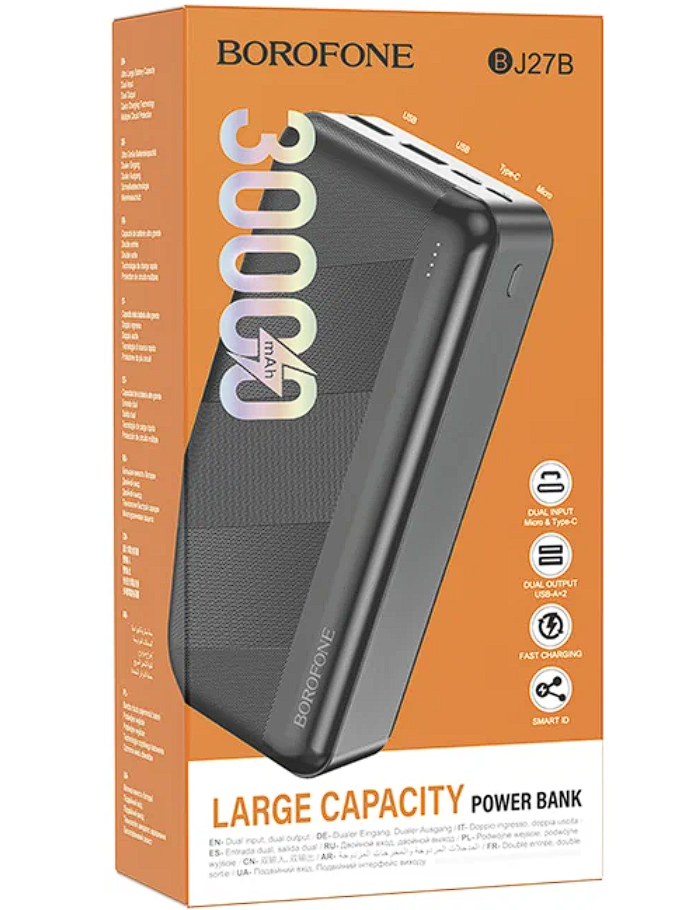 Купить Внешний аккумулятор Borofone BJ27B, 30000 мАч, 2USB, 2.1 A, чёрный