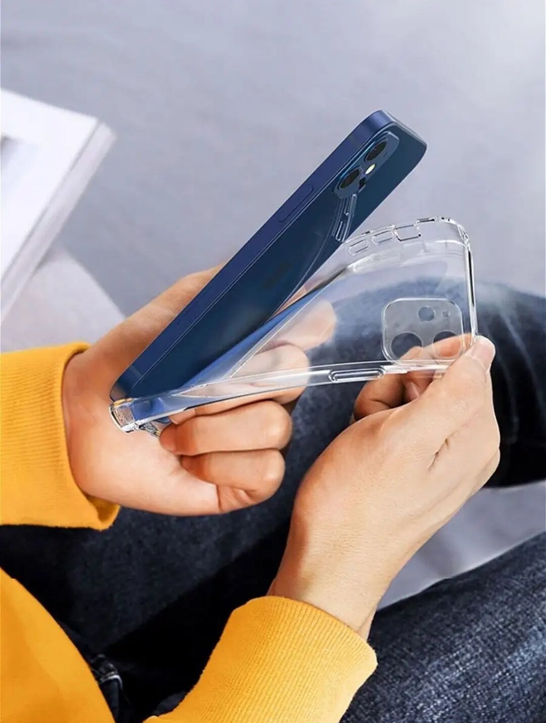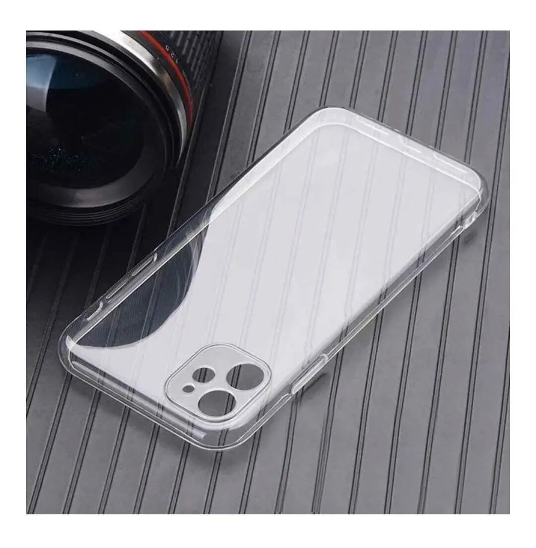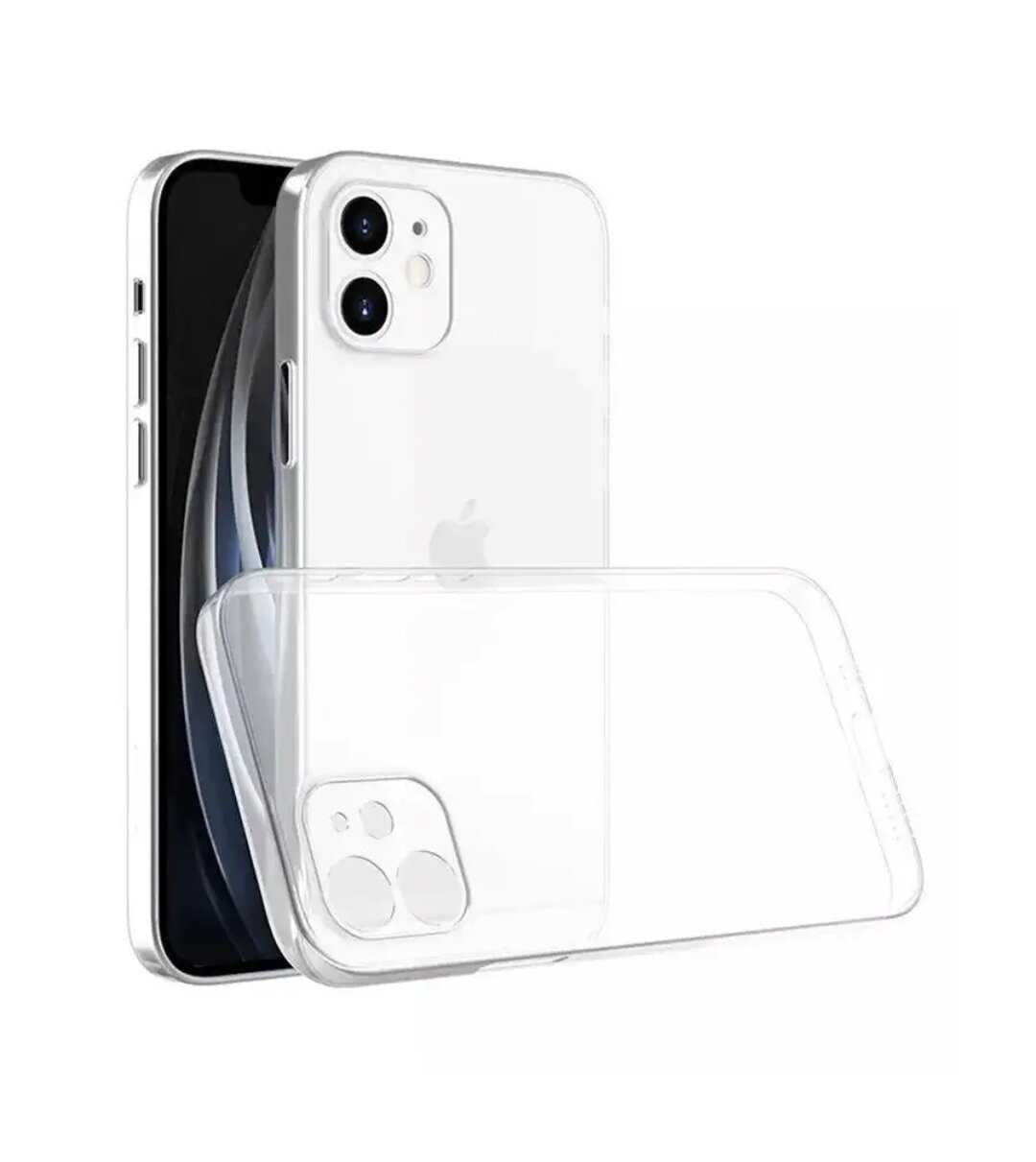 Чехол силиконовый для iPhone 12 с защитой камеры / Прозрачный чехол на Айфон 12