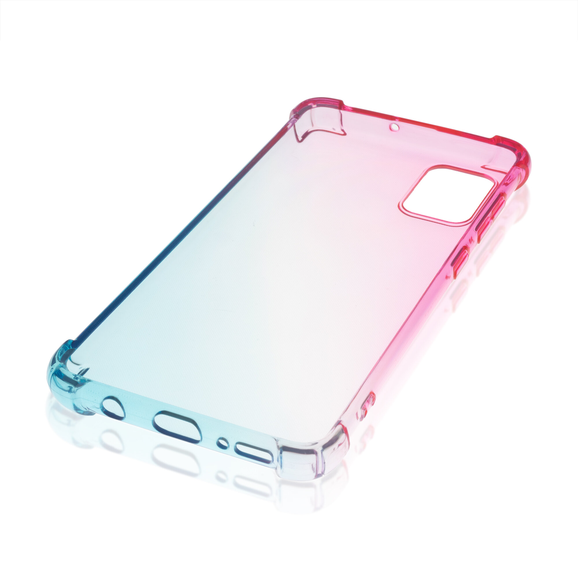 Противоударный силиконовый чехол ROSCO для Samsung Galaxy A51 (Самсунг Галакси А51) с усиленными углами, прозрачный розово-голубой