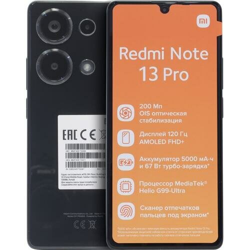 Смартфон Xiaomi Redmi Note 13 Pro RU 12+512 N6/Midnight Black 6.67 FHD+/AMOLED/120 Hz/MTK G99 Ultra/And13/200+8+2/16MP/NFC/5000mAh