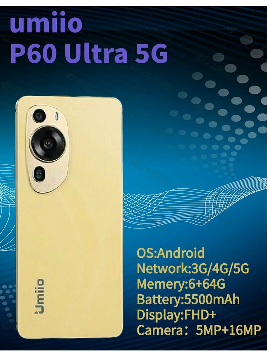 Смартфон/ Umiio/ P60 Ultra, 64 ГБ, черный, синий, золотой