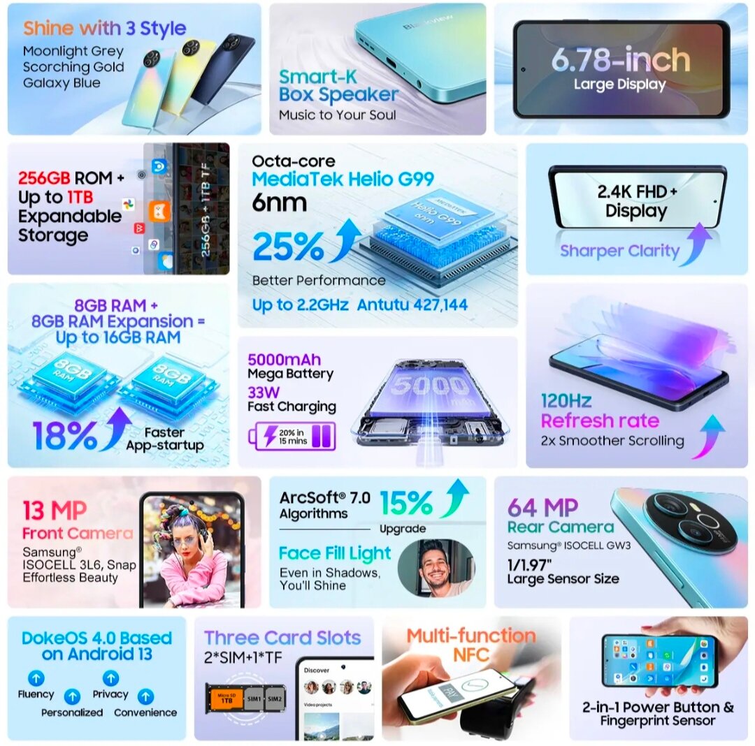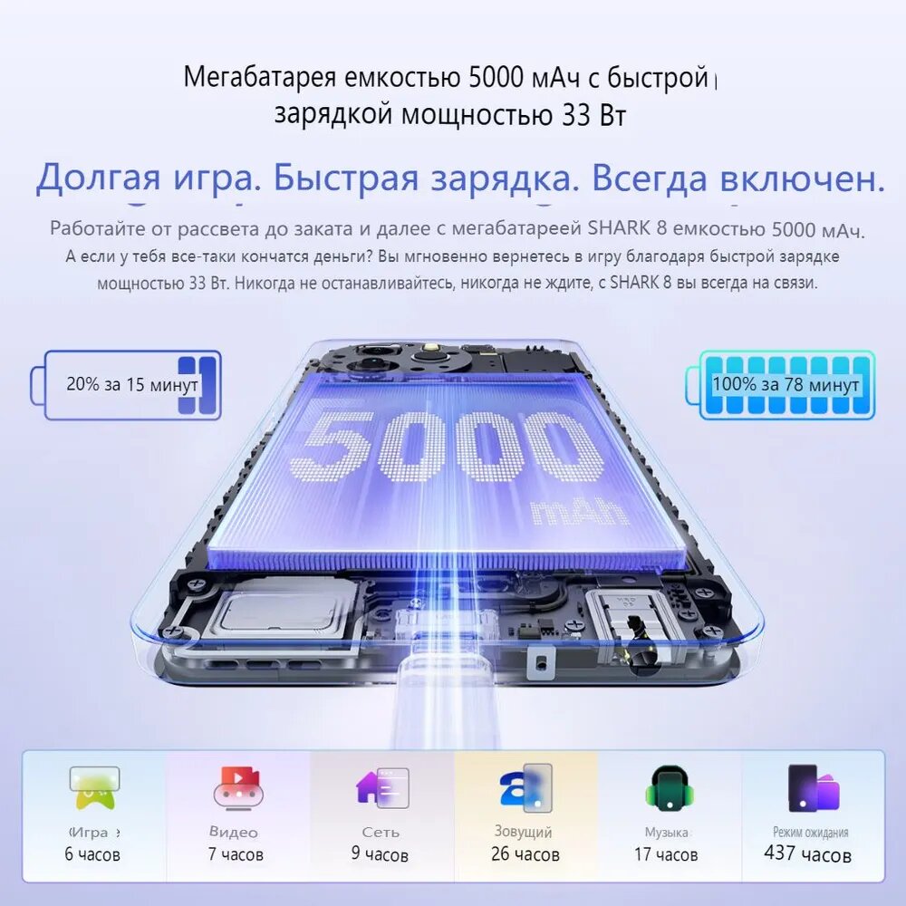 СохранитьСмартфон Blackview Shark 8 8/256Gb Global Moonlight Grey интересное: