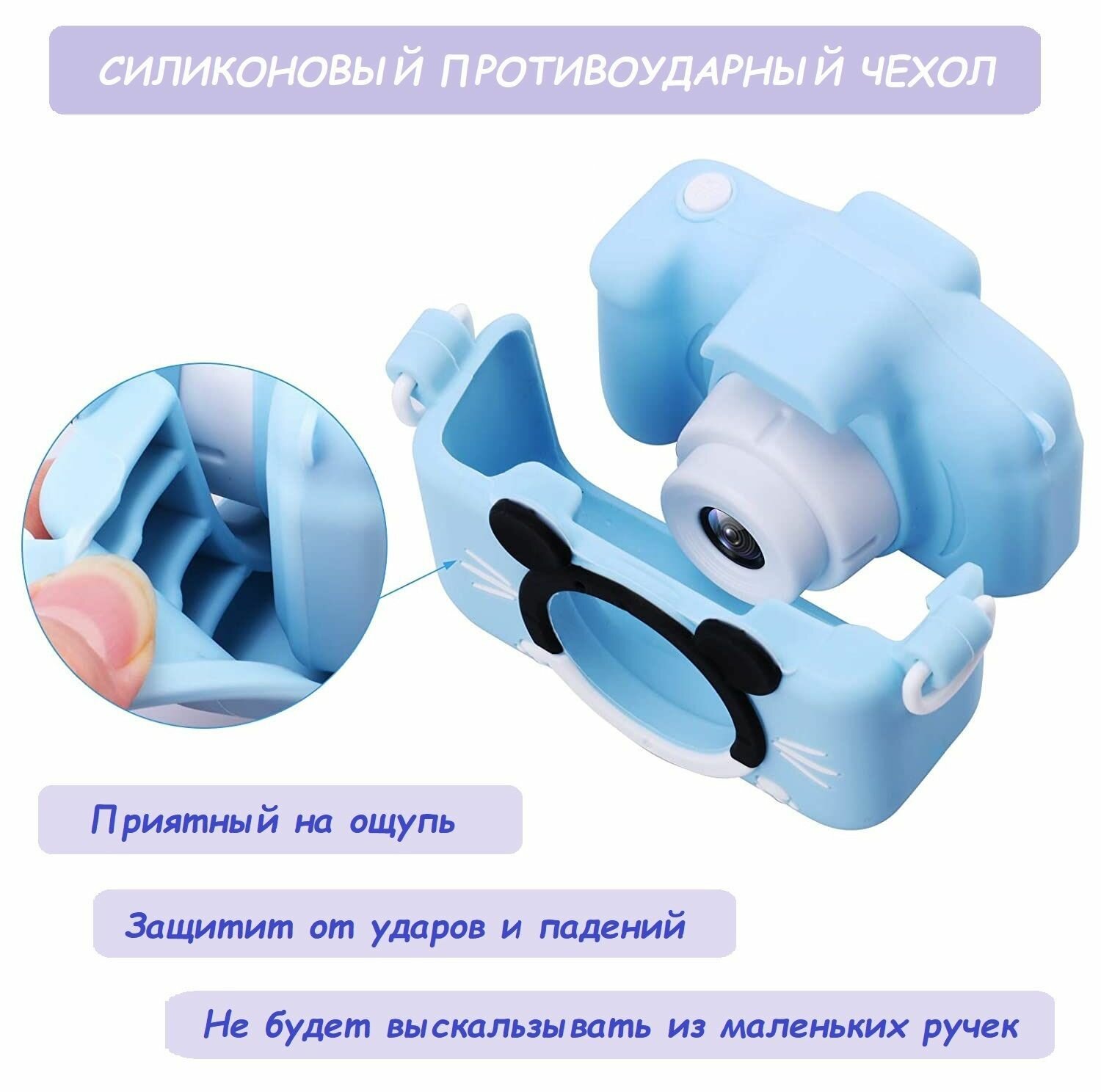 Фотоаппарат детский Мышонок/Мышка (голубой) с селфи-камерой и играми + карта памяти 32 ГБ интересное: