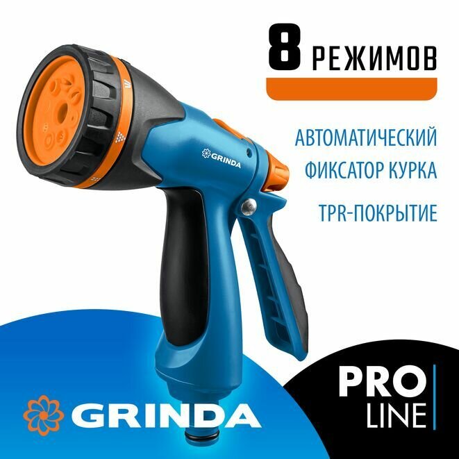 Набор поливочный, пистолет поливочный PROLine, GRINDA B-8, 8 режимов, курок сзади, двухкомпонентный интересное: