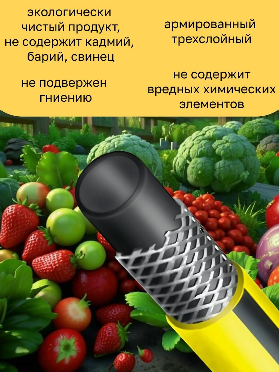 Шланг поливочный Гидроагрегат 1/2 дюйма, 25 м, армированный, 3-х слойный желтый с черной полосой / Шланг для полива на даче / Поливочные шланги / Шланг садовый / Поливочный шланг