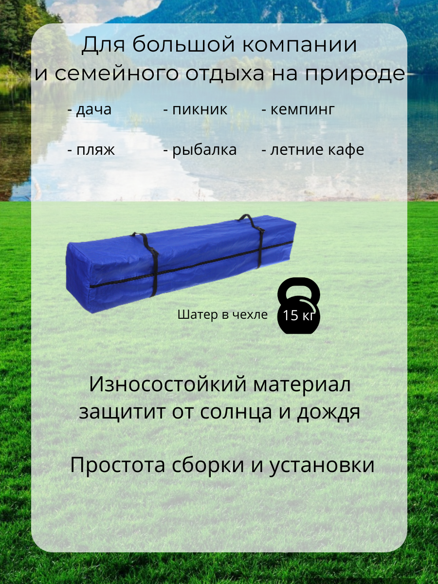 СохранитьТент шатер туристический садовый беседка "Отдых" раздвижной 3*3*2,5м синий интересное: