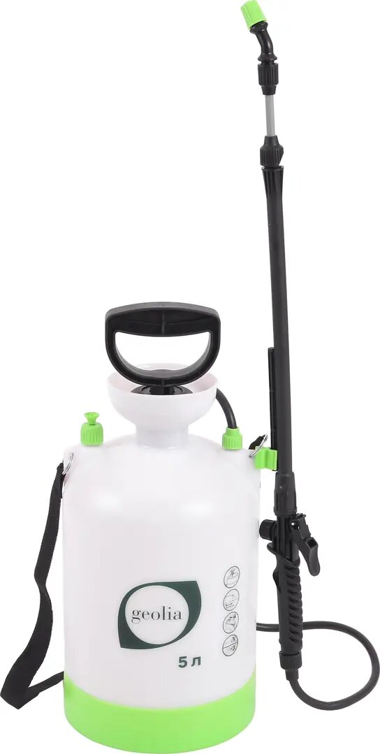 | Комплектация | Опрыскиватель универсальный наплечный Geolia 5 л, цвет белый |