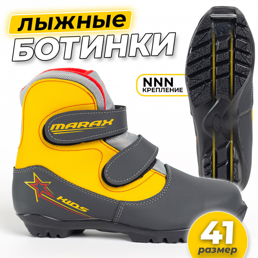 Купить Ботинки лыжные MARAX MXN-Kids с креплением NNN, размер 41, серо-желтый