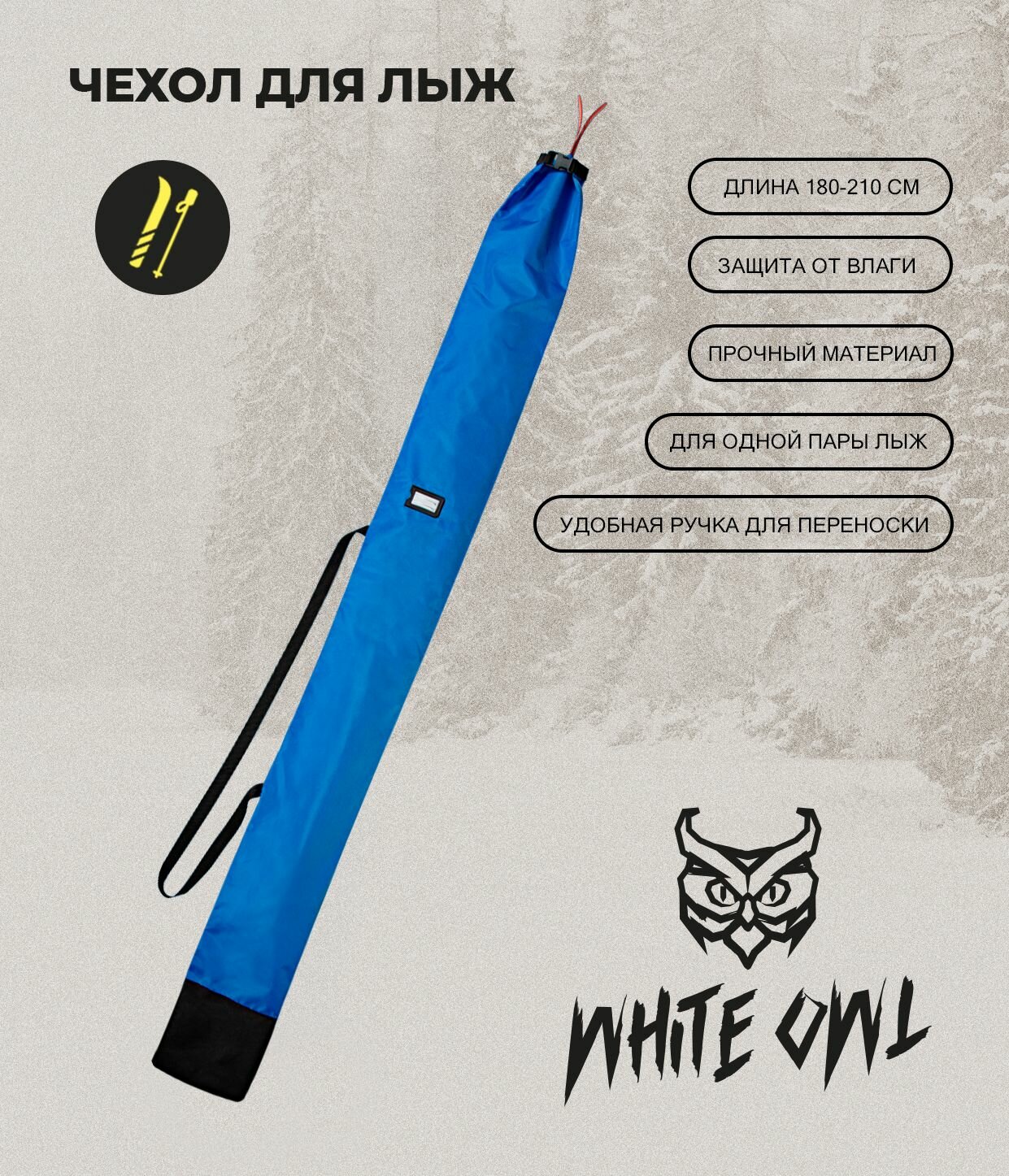 Чехол для лыж White Owl , модель SBC_999-205, 180-210 см, синий