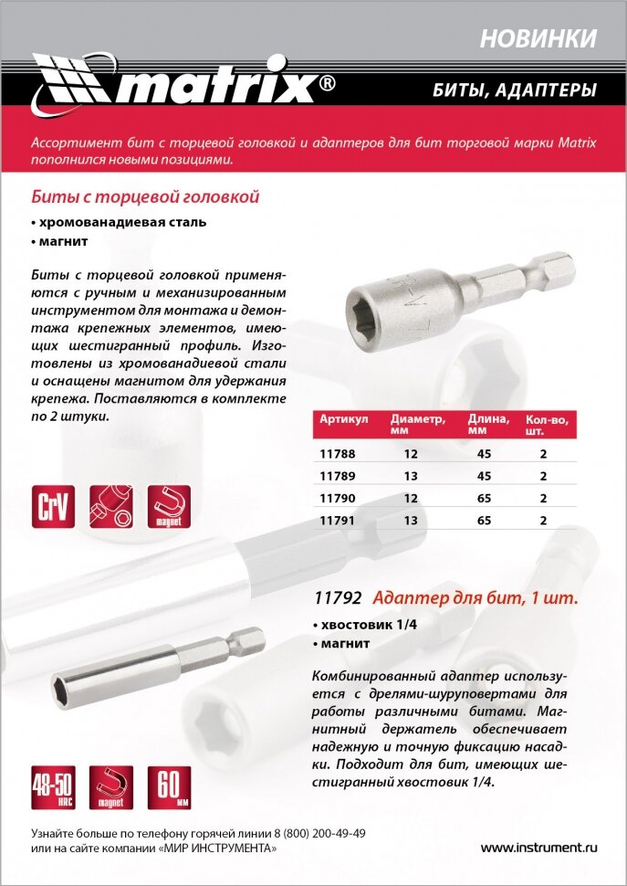 Адаптер для бит Matrix 11792, магнитный, шестигранный, 1 шт