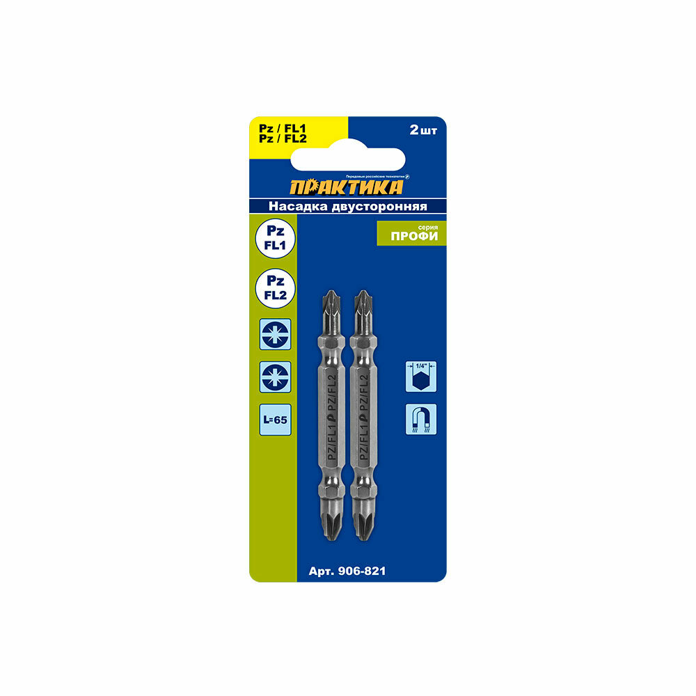 ПРАКТИКА Бита отверточная "Профи" двусторонняя PZ/FL1-PZ/FL2x65мм 2шт для электротехнич. работ 906-821 интересное: