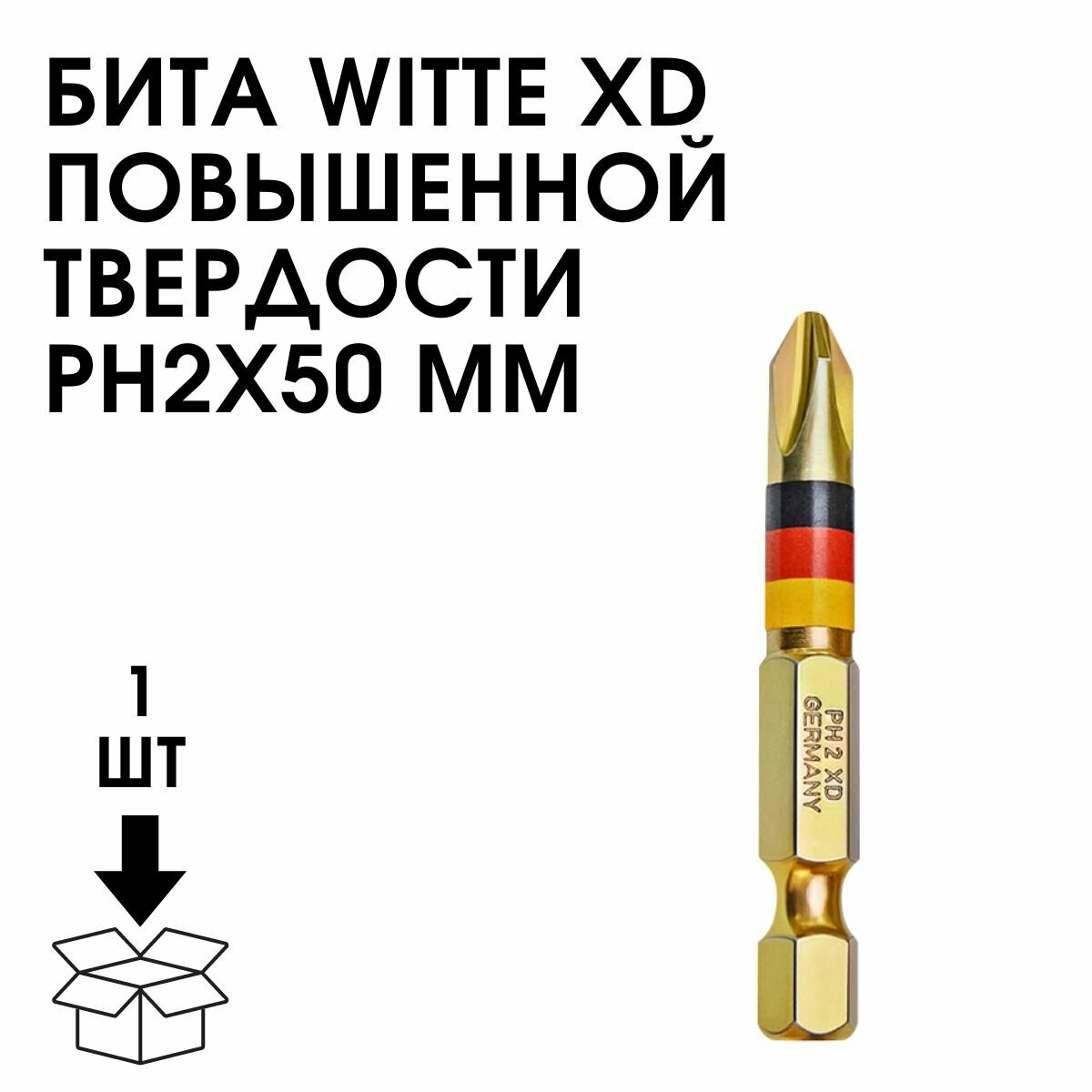 Бита PH2 х 50 мм WITTE EXTRAHART XD 50мм с намагниченным наконечником, повышенной твердости. 1 шт.