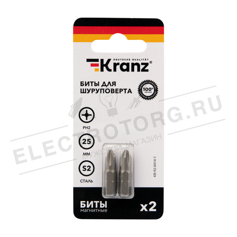 Бита износостойкая для шуруповерта KRANZ с магнитным наконечником PH2х25 мм, 2 штуки