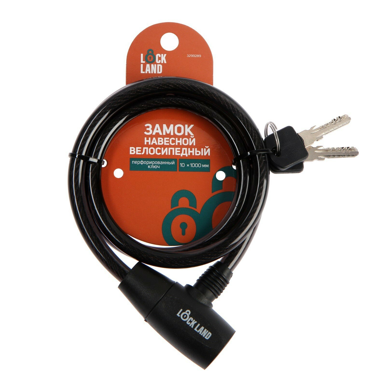 Замок навесной велосипедный LOCKLAND, 10х1000 мм, перфорированный ключ с пластиковой ручкой