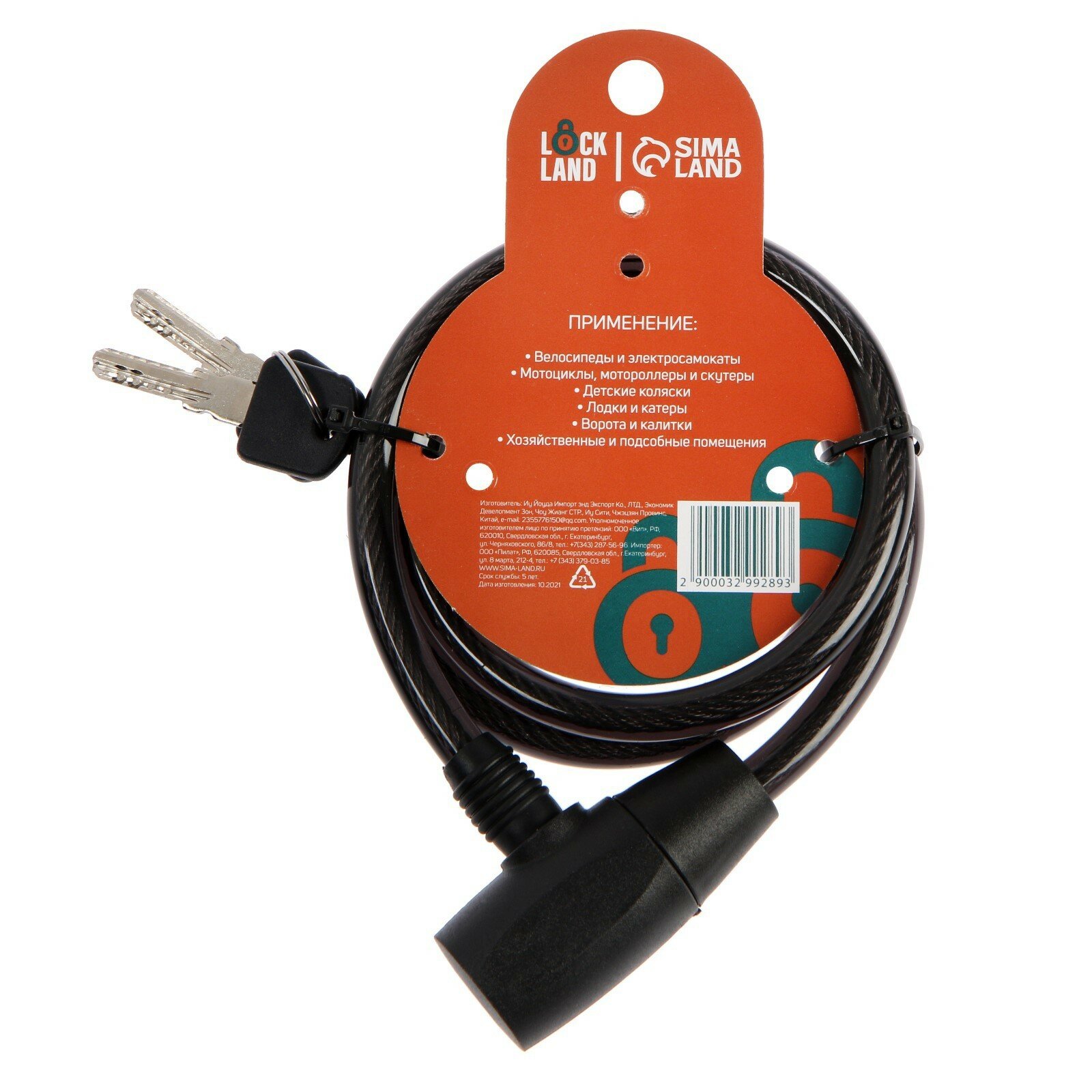 Замок навесной велосипедный, 10х1000 мм, перфорированный ключ с пластиковой ручкой интересное: