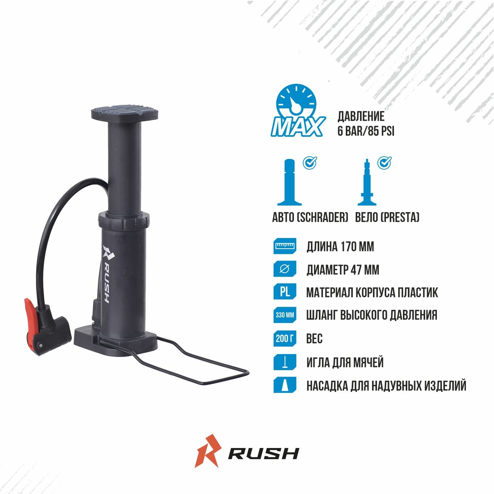 Насос ножной велосипедный один баллон 40x155 мм RUSH HOUR. Шланг велонасоса под ниппель AV/FV