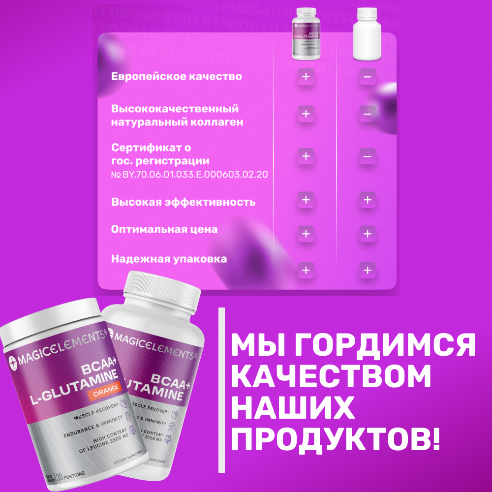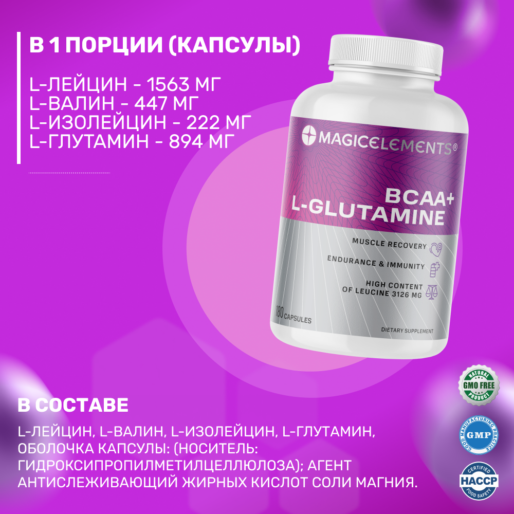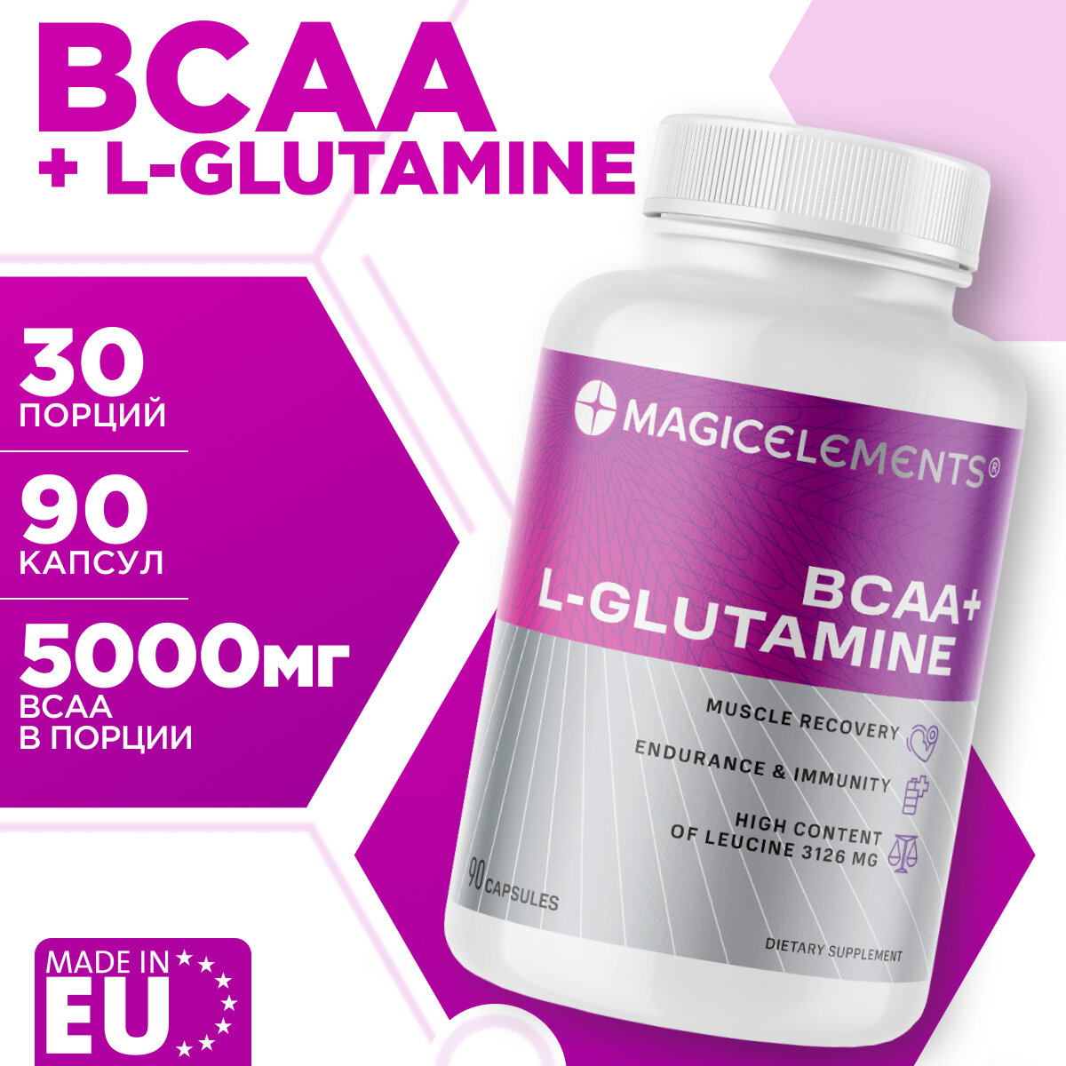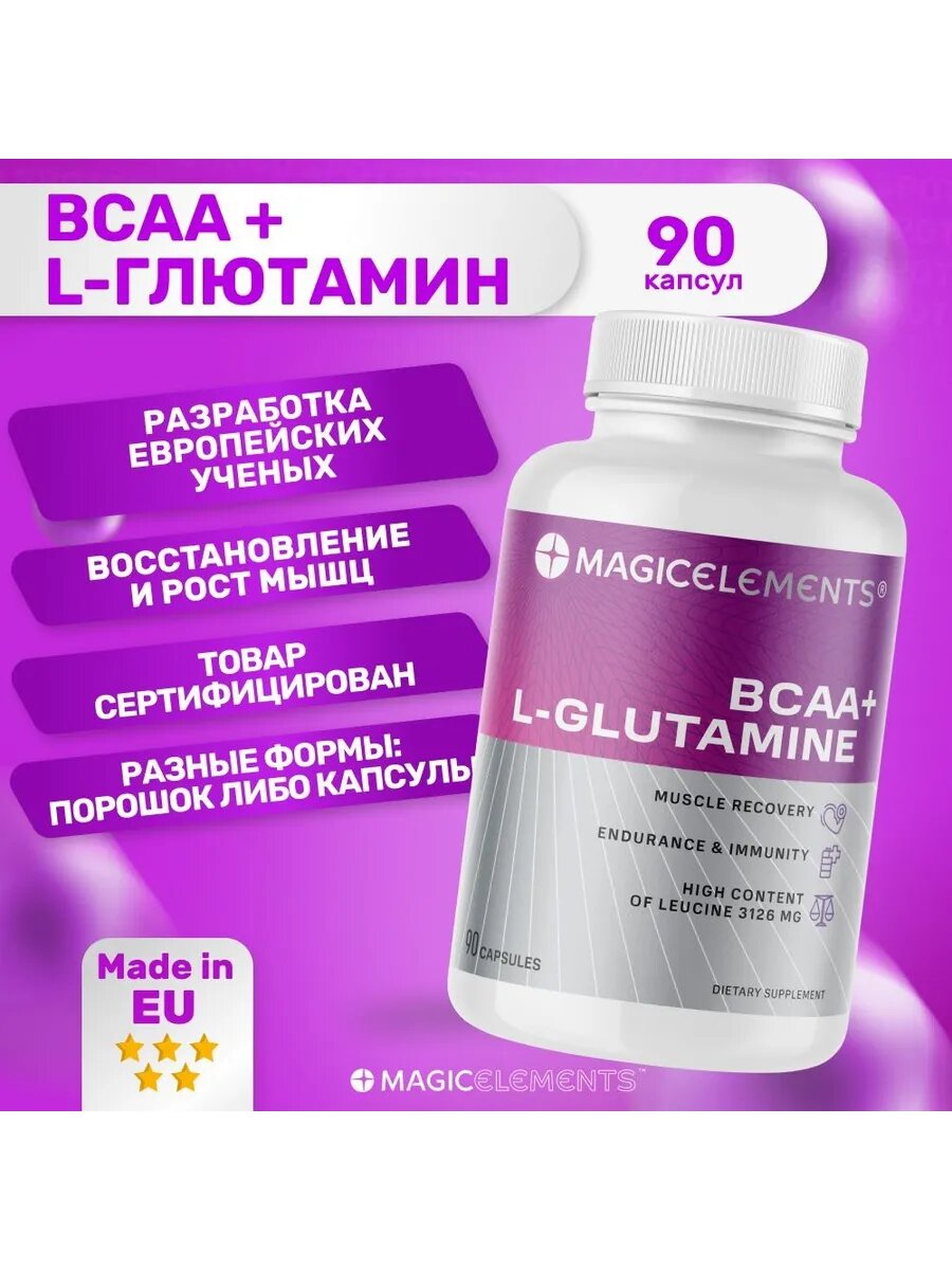 BCAA + L-Glutamine Magic Elements БЦАА + Глютамин 90 капсул интересное:
