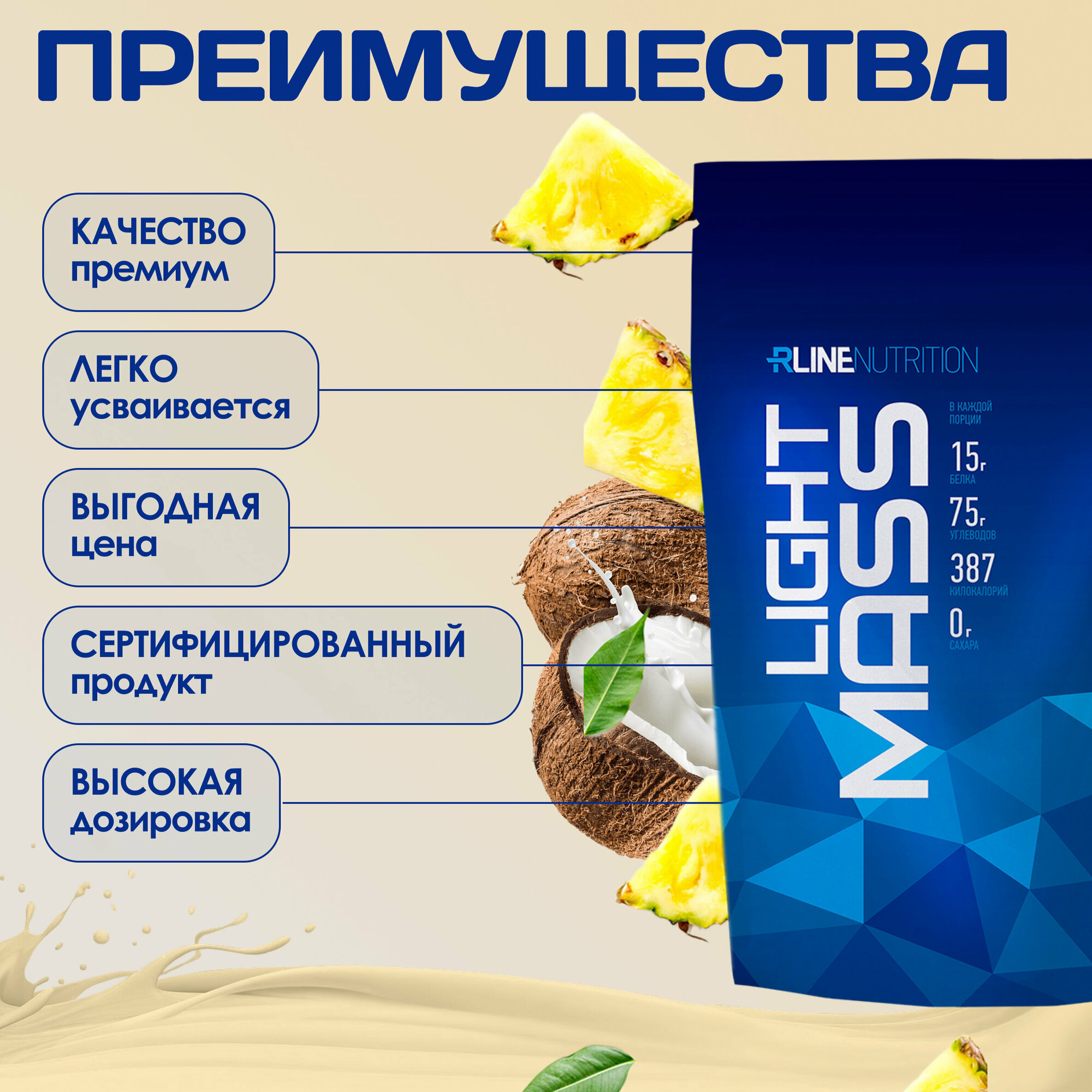 R-Line Sport Nutrition Light Mass 3000 гр (R-Line Sport Nutrition) Пина колада интересное: